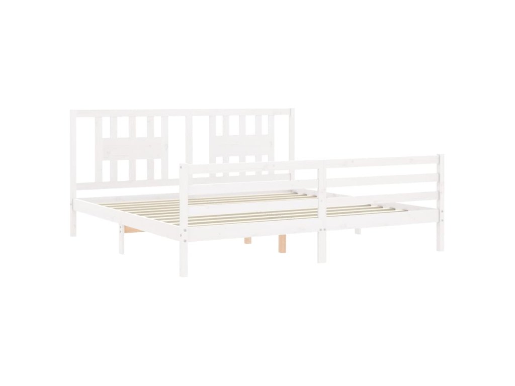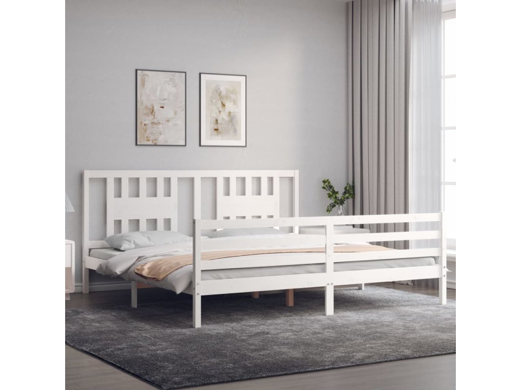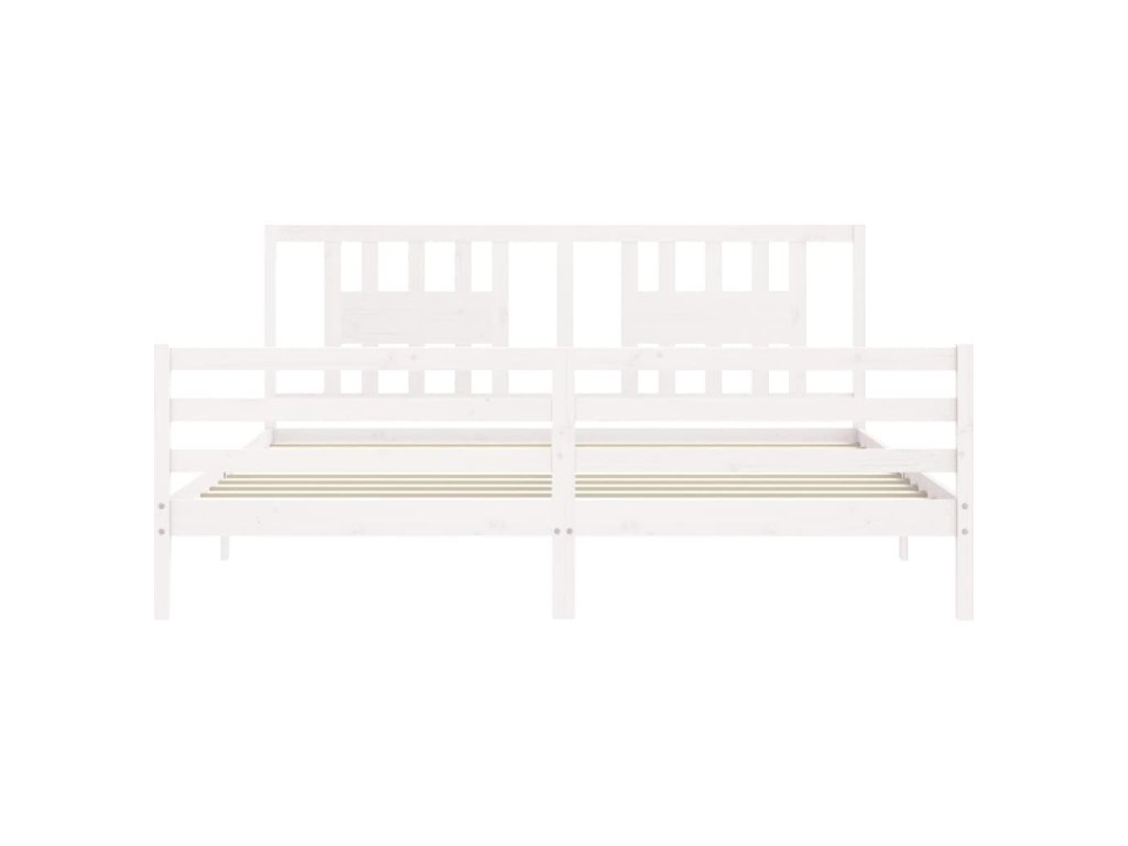 Rám postele s čelem bílý 200 x 200 cm masivní dřevo 3194592