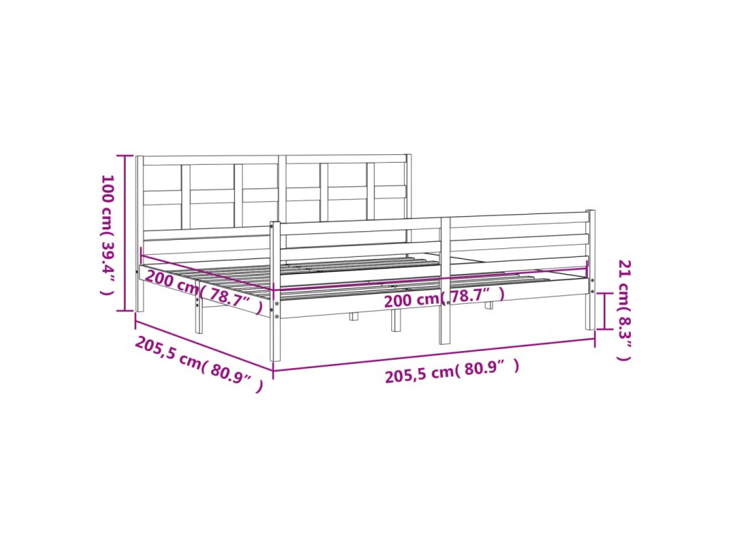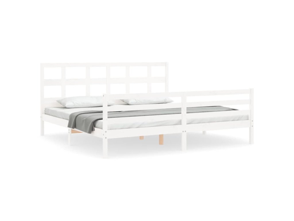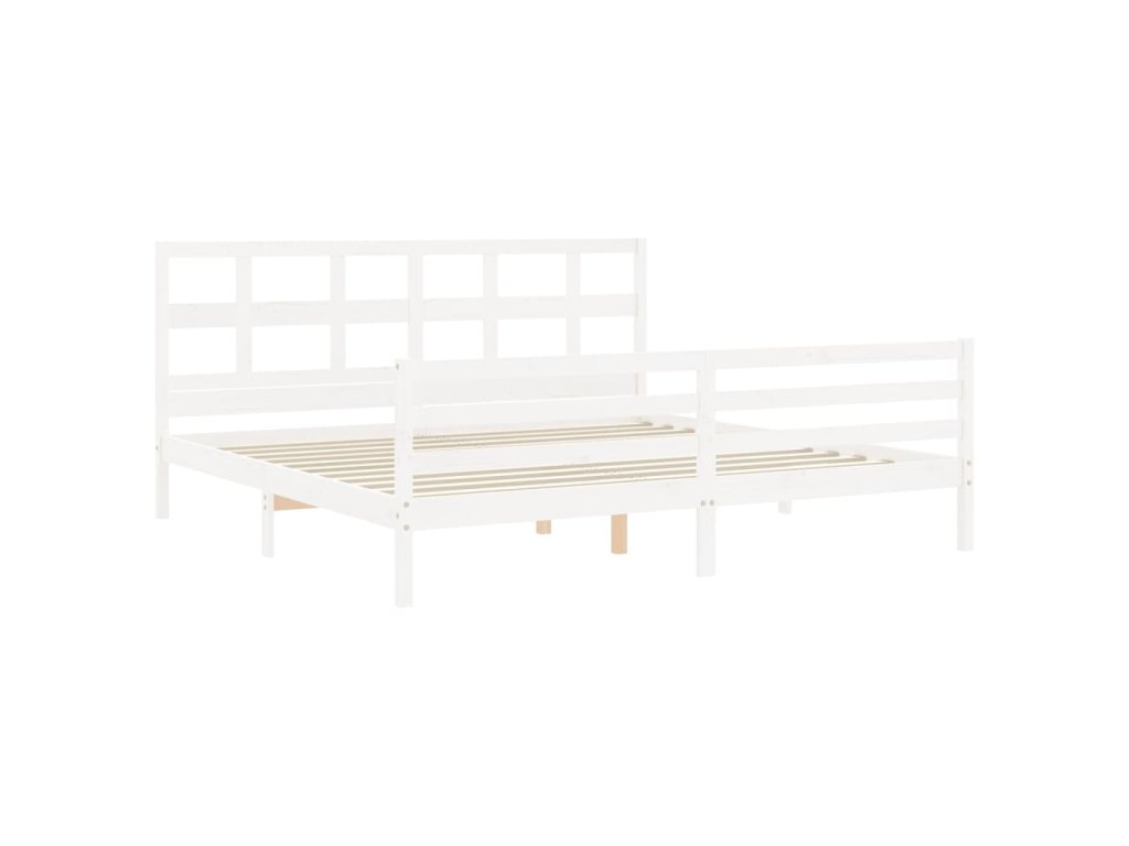 Rám postele s čelem bílý 200 x 200 cm masivní dřevo 3194852