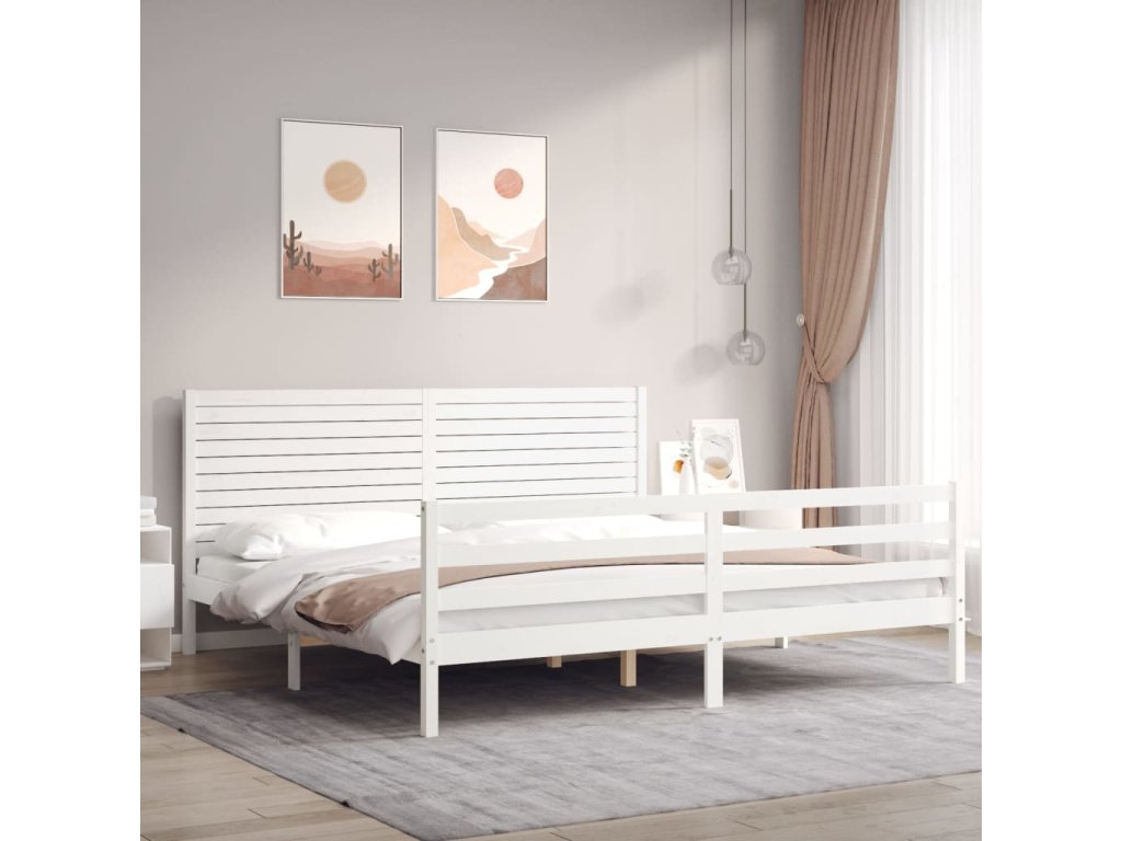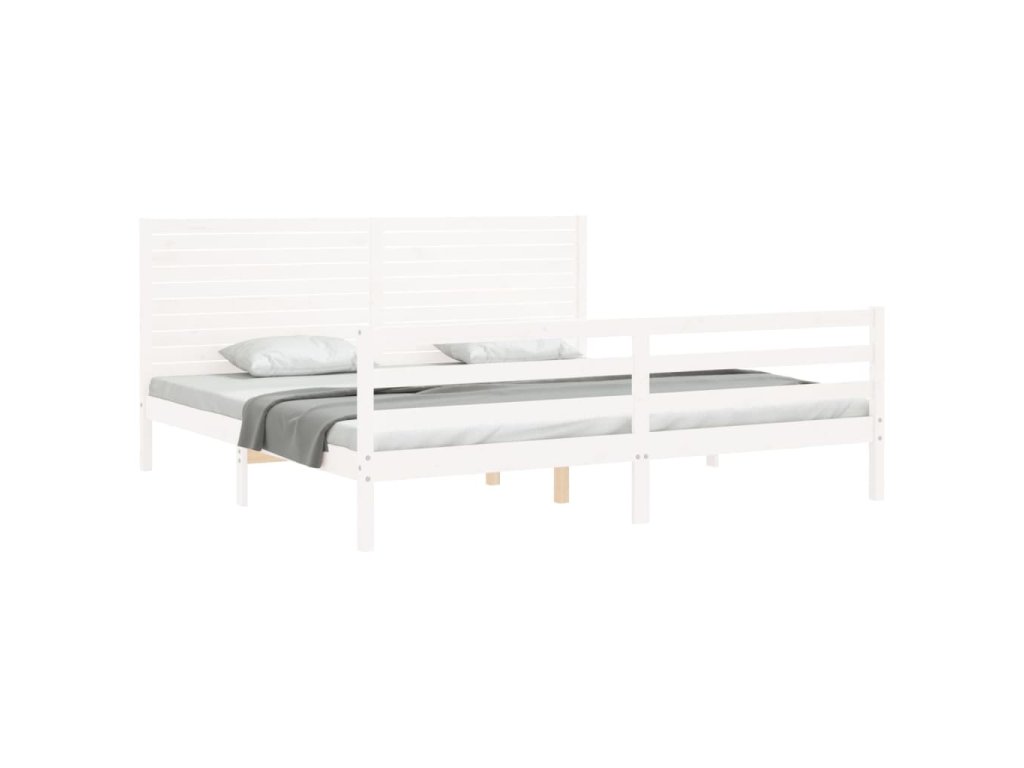 Rám postele s čelem bílý 200 x 200 cm masivní dřevo 3195047