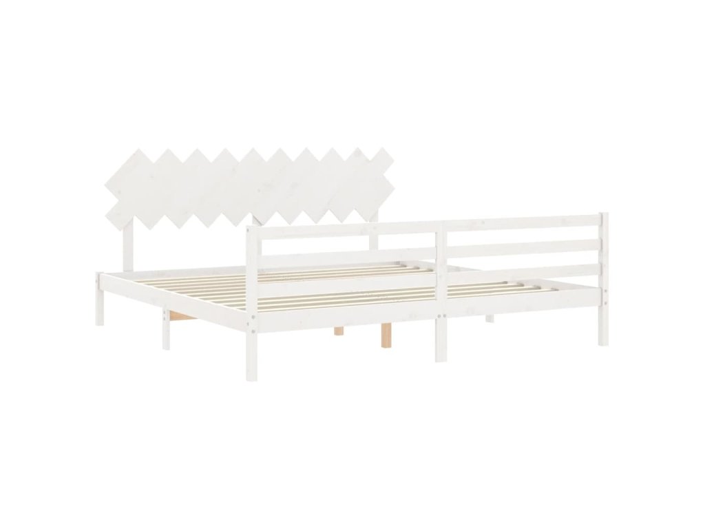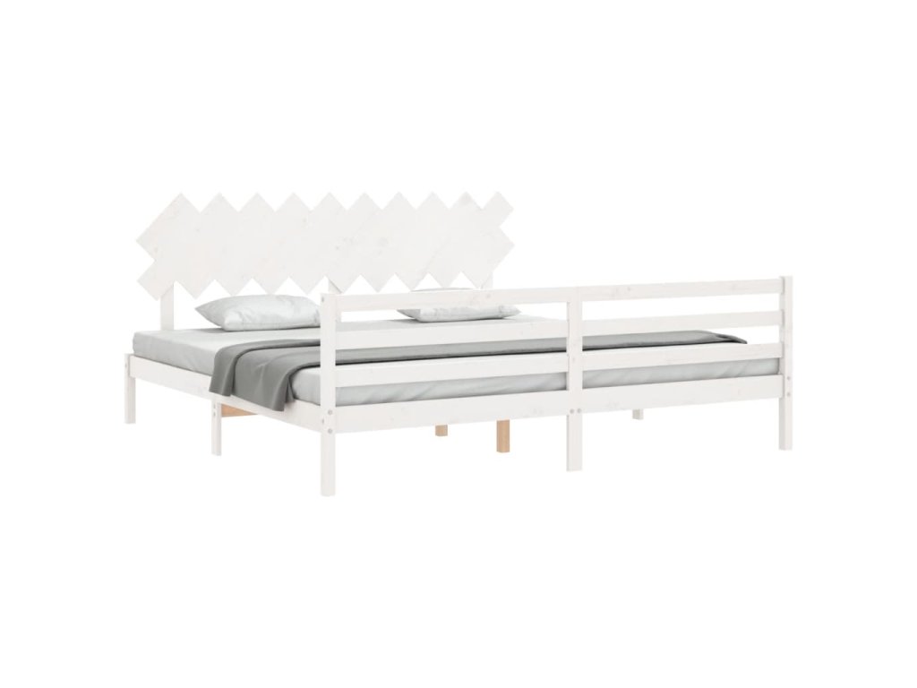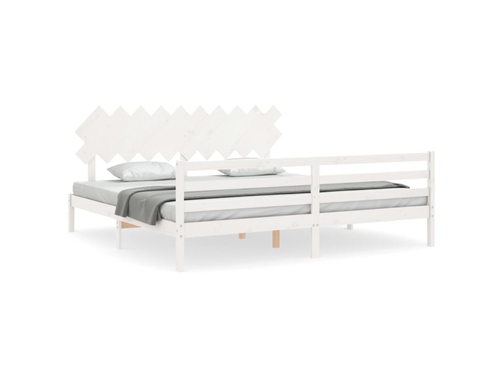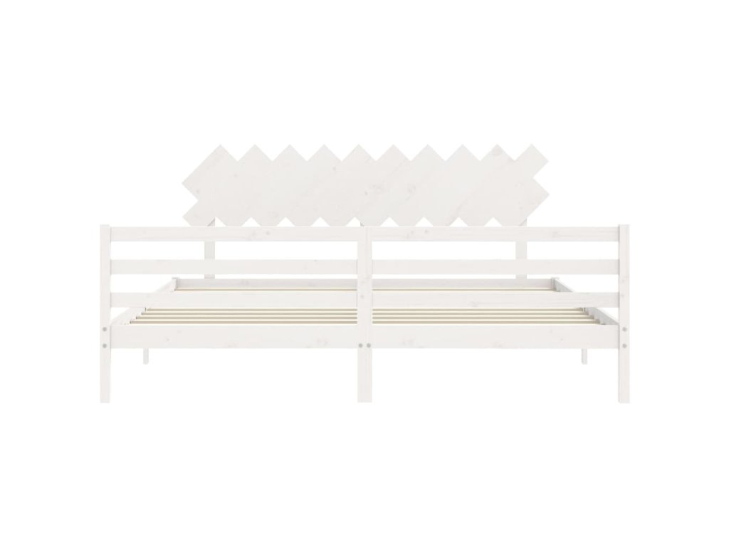 Rám postele s čelem bílý 200 x 200 cm masivní dřevo 3195307