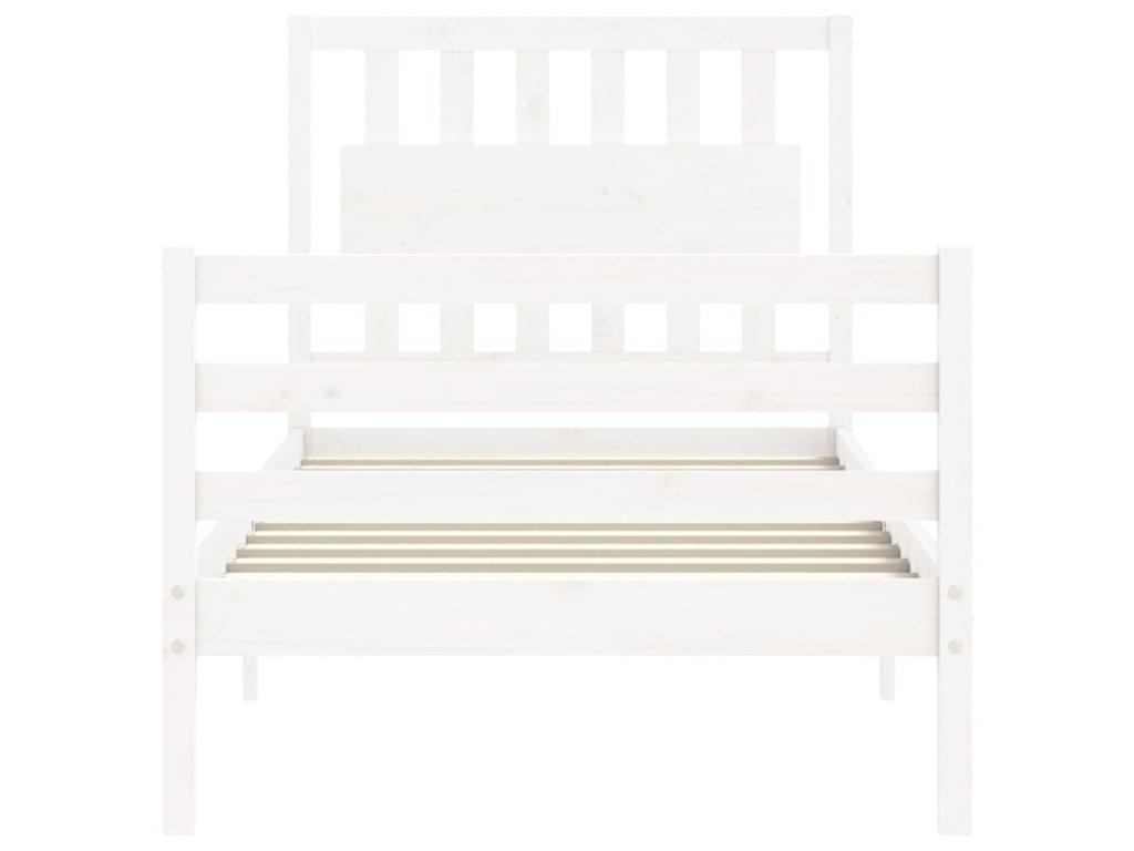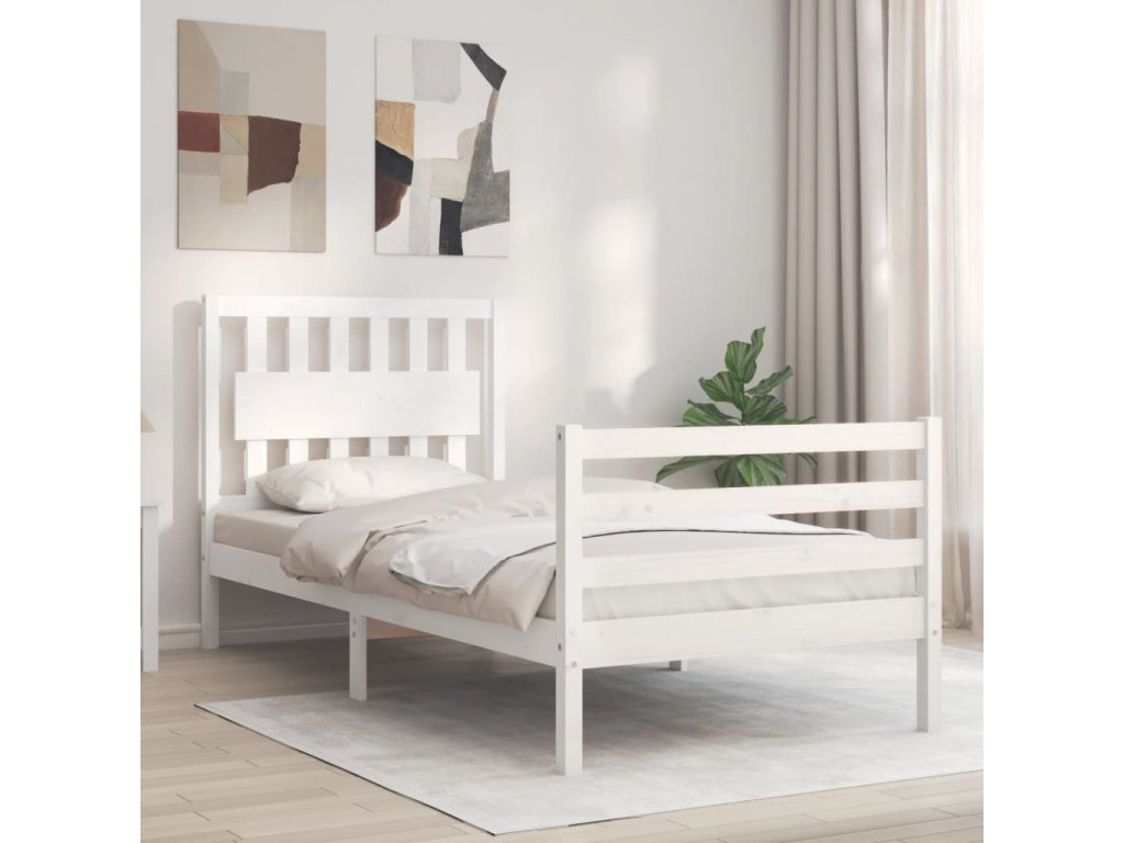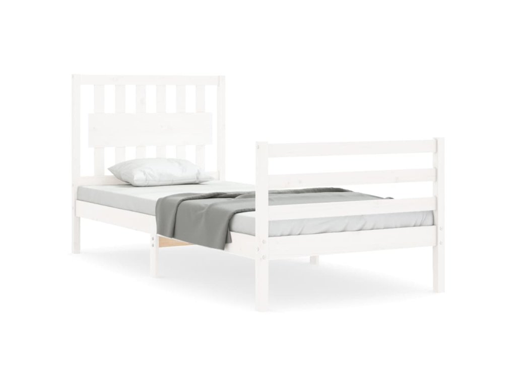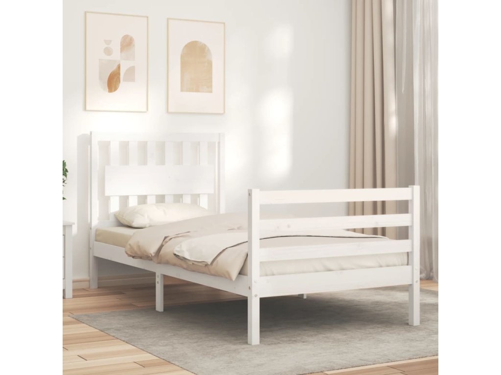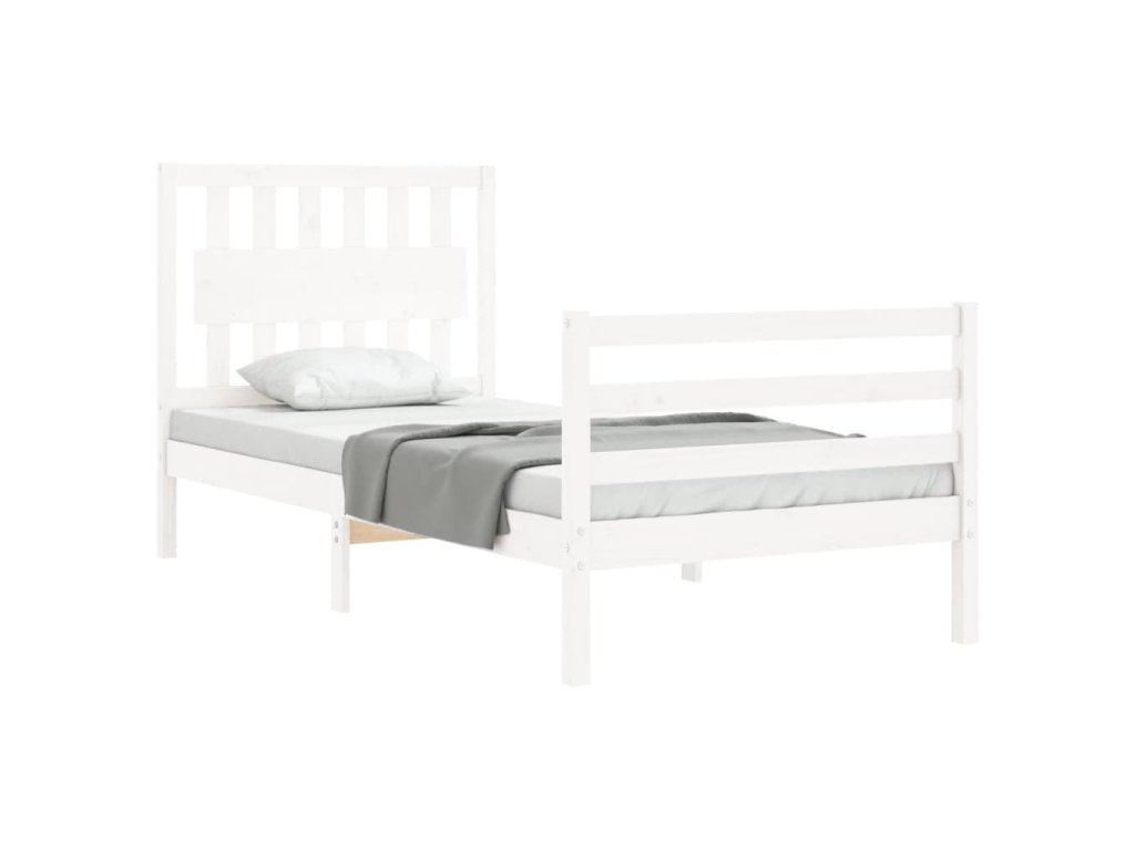 Rám postele s čelem bílý 90 x 200 cm masivní dřevo 3194297