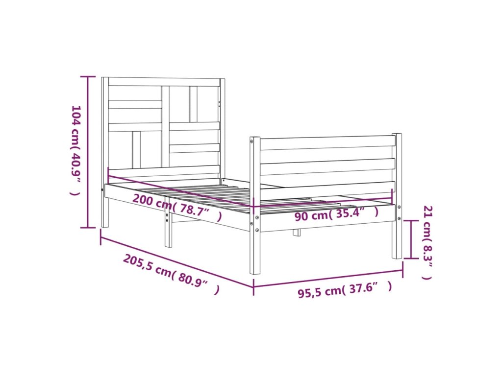 - Celkové rozměry postele: 205,5 x 95,5 x 104 cm (D x Š x V)