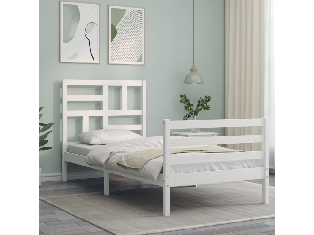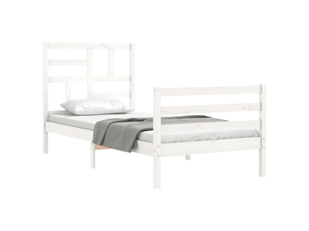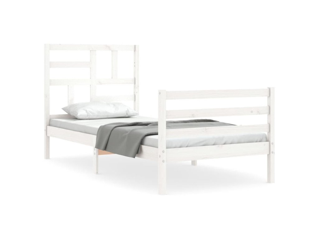 Rám postele s čelem bílý 90 x 200 cm masivní dřevo 3194882