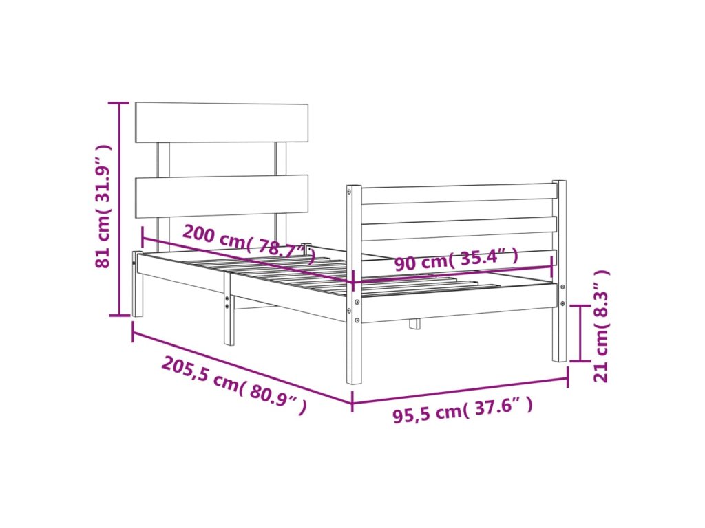 - Celkové rozměry postele: 205,5 x 95,5 x 81 cm (D x Š x V)