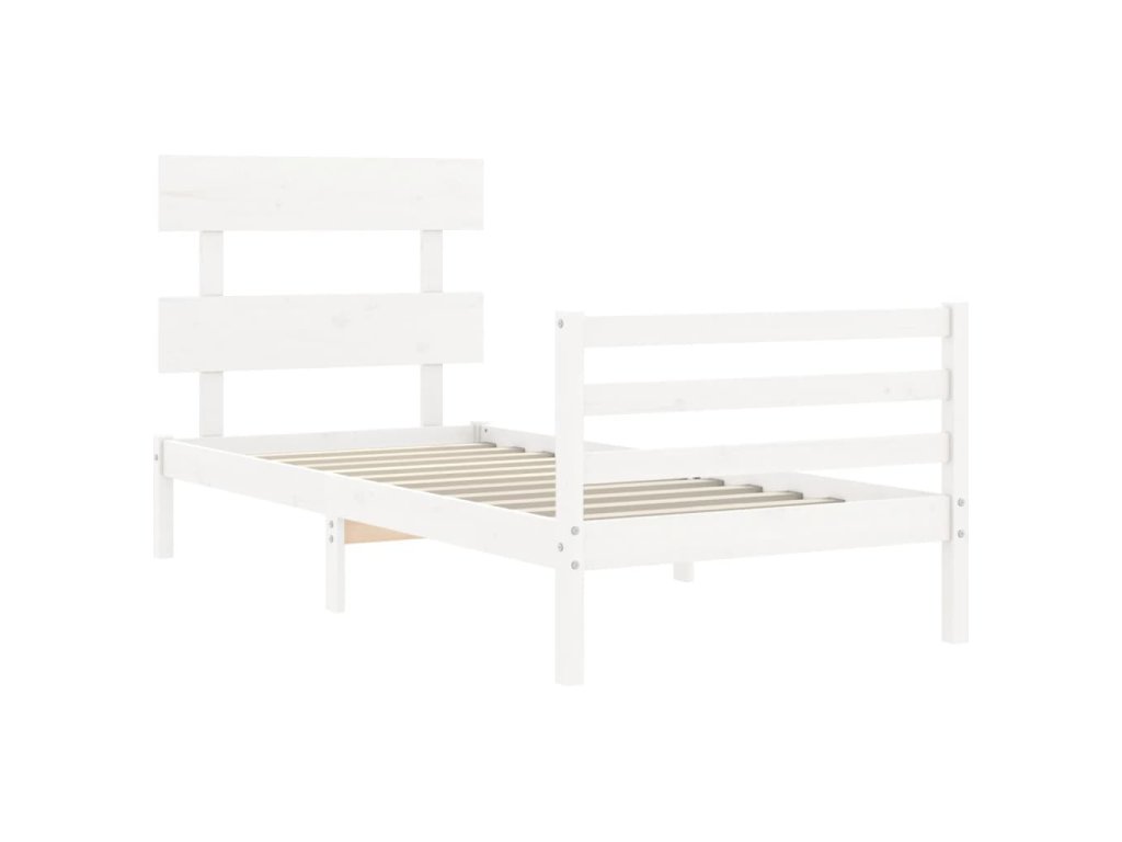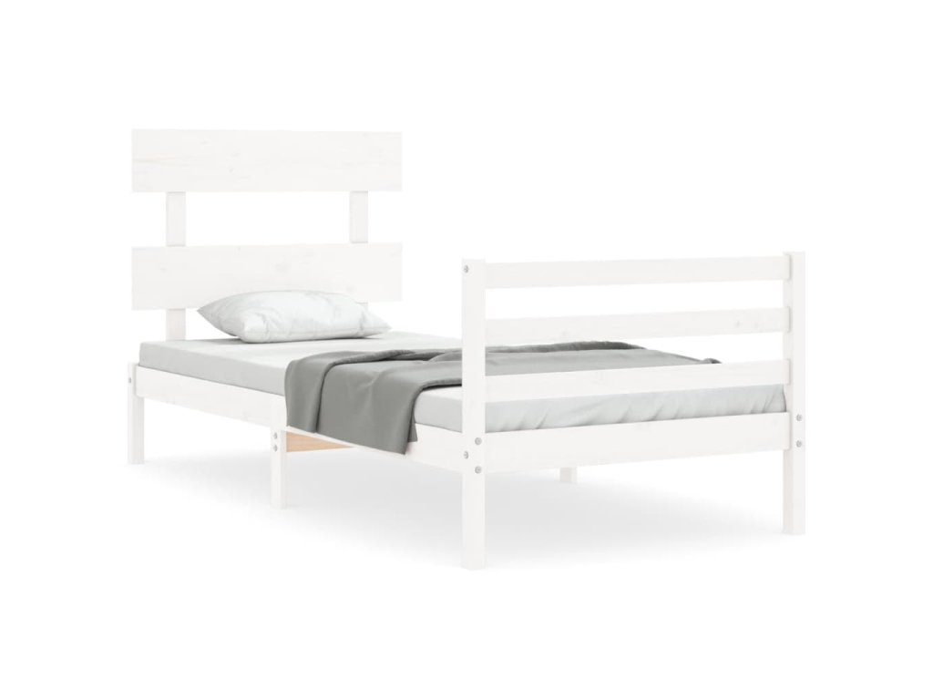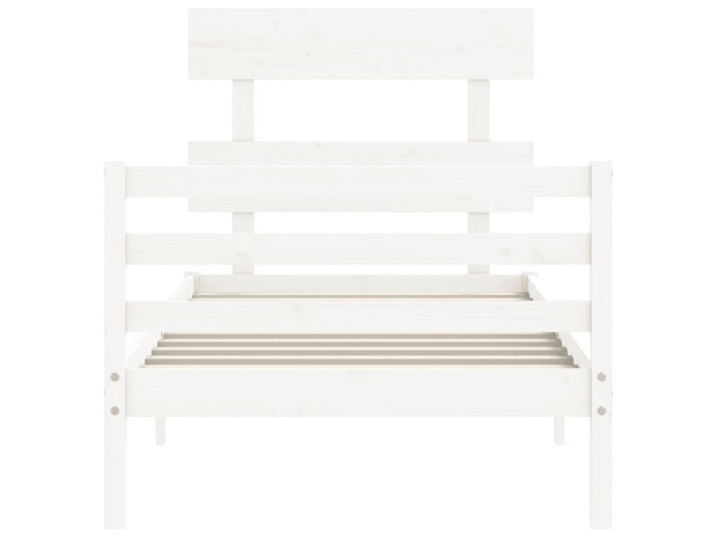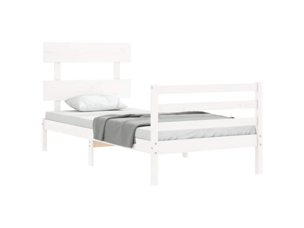 Rám postele s čelem bílý 90 x 200 cm masivní dřevo 3195077