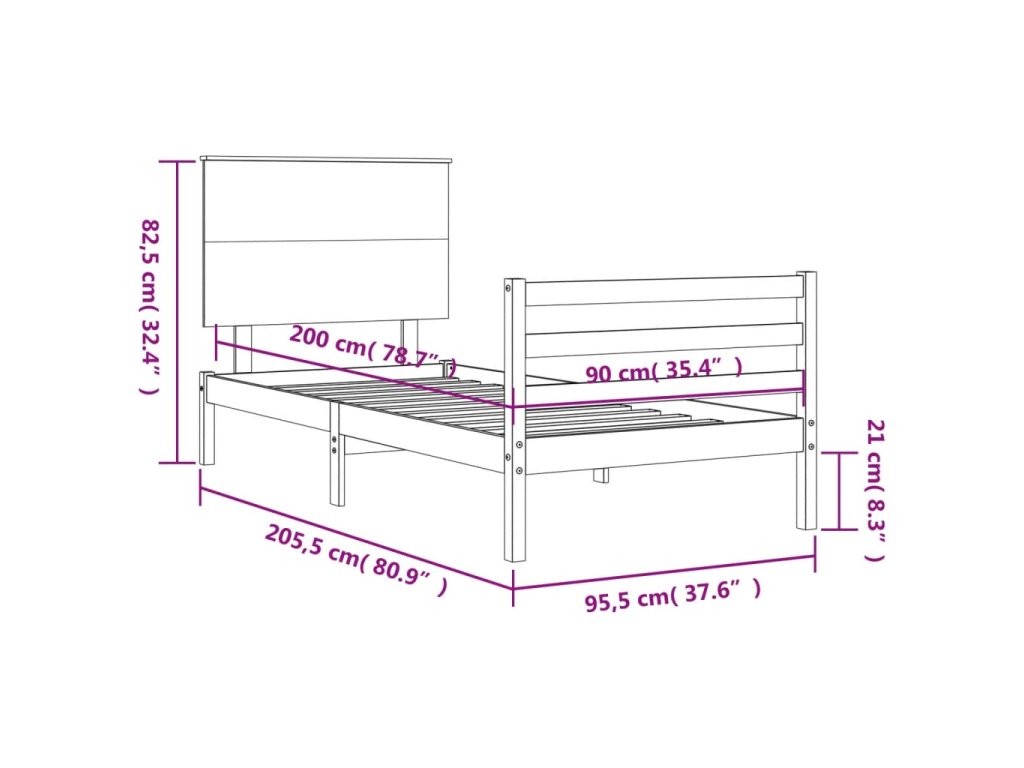 - Celkové rozměry postele: 205,5 x 95,5 x 82,5 cm (D x Š x V)