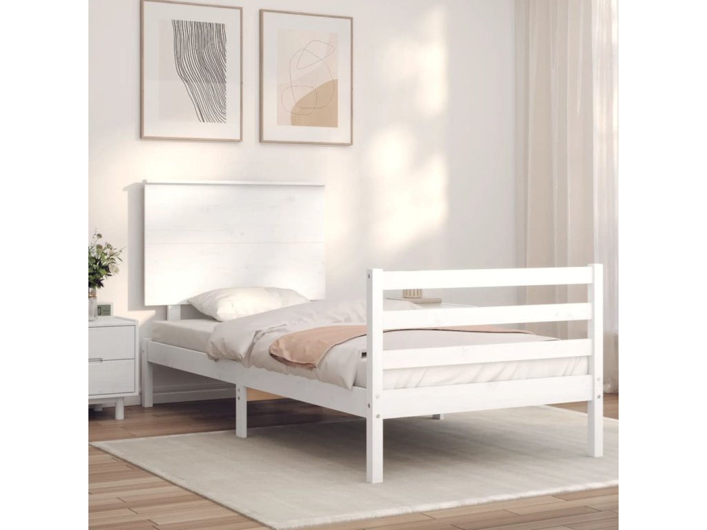Rám postele s čelem bílý 90 x 200 cm masivní dřevo 3195207