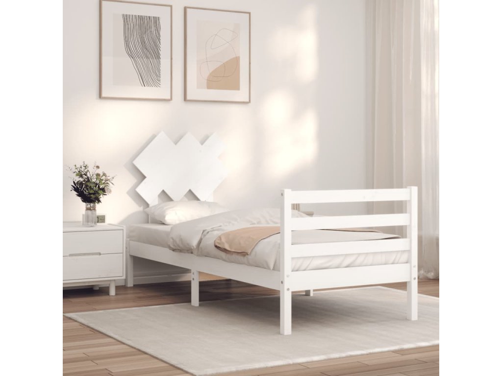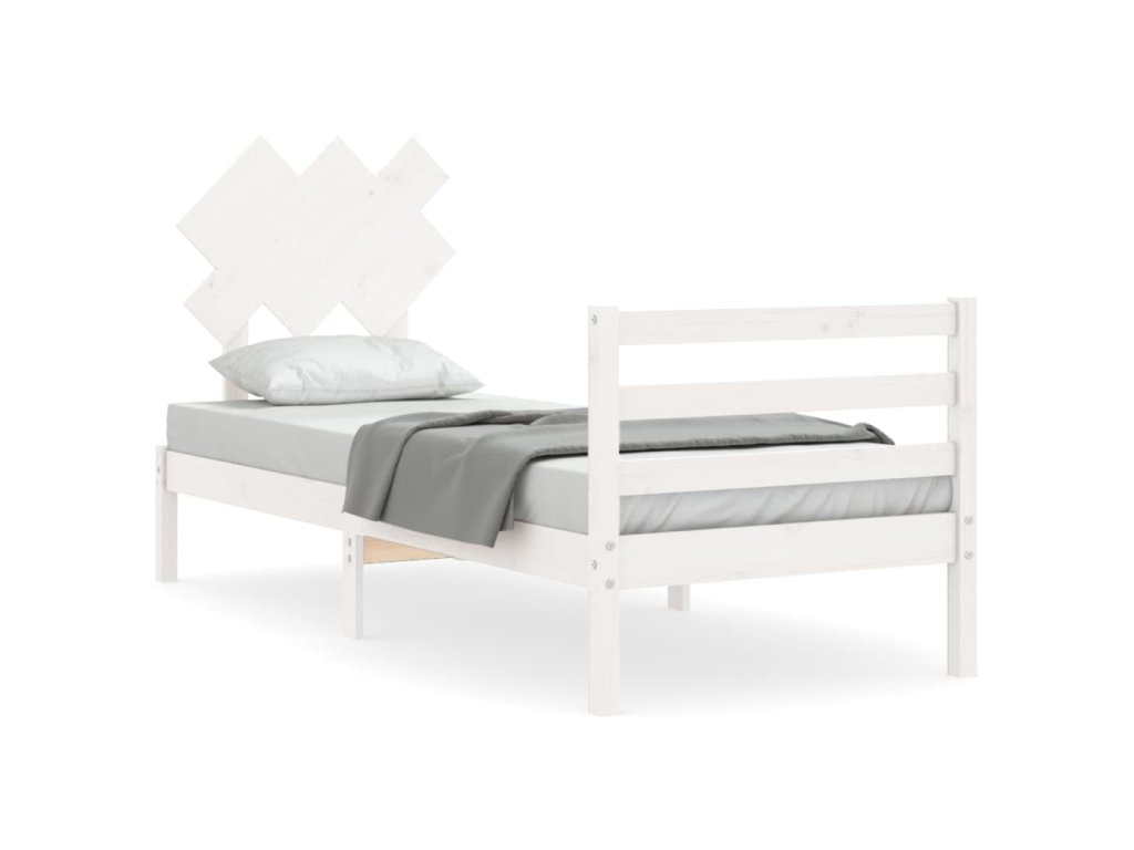 Rám postele s čelem bílý 90 x 200 cm masivní dřevo 3195272