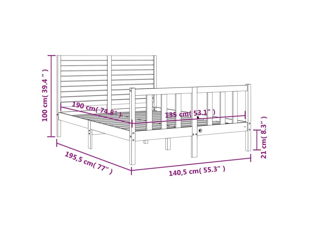 - Celkové rozměry postele: 195,5 x 140,5 x 100 cm (D x Š x V)