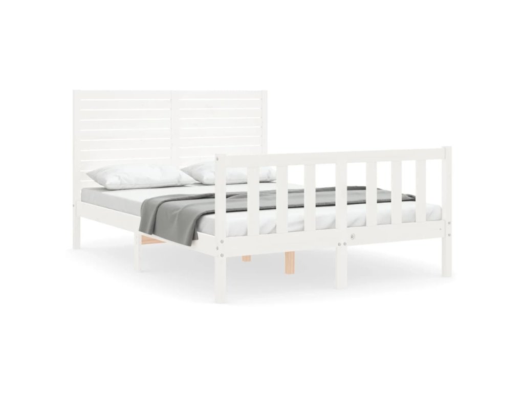Rám postele s čelem bílý Double masivní dřevo 3193182