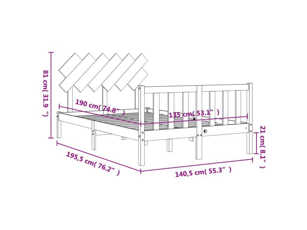 - Celkové rozměry postele: 195,5 x 140,5 x 81 cm (D x Š x V)