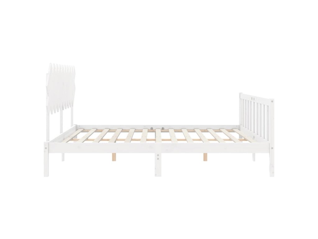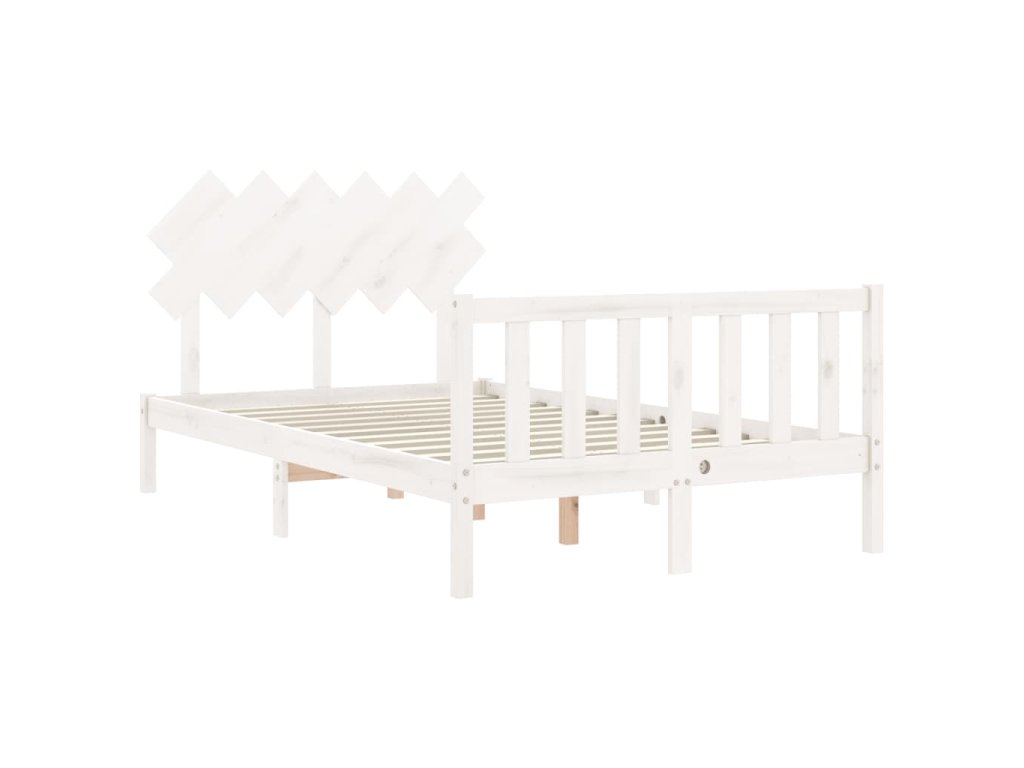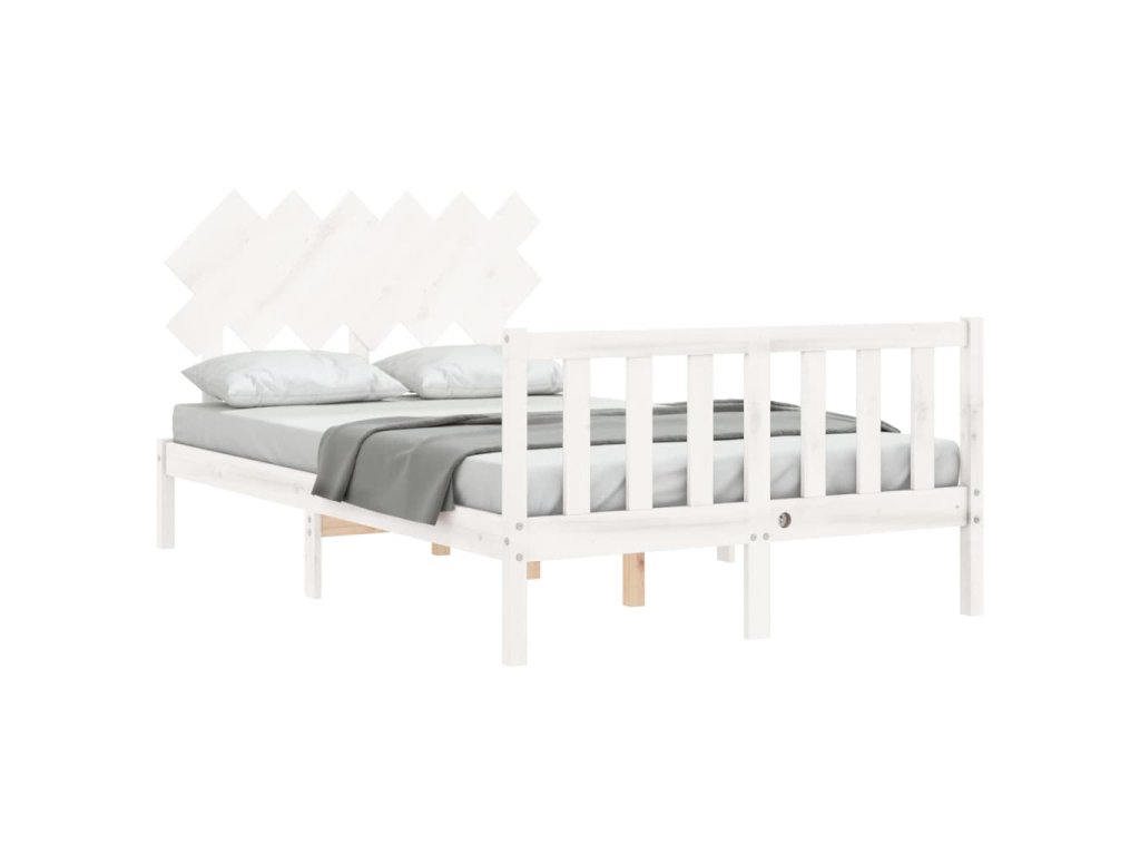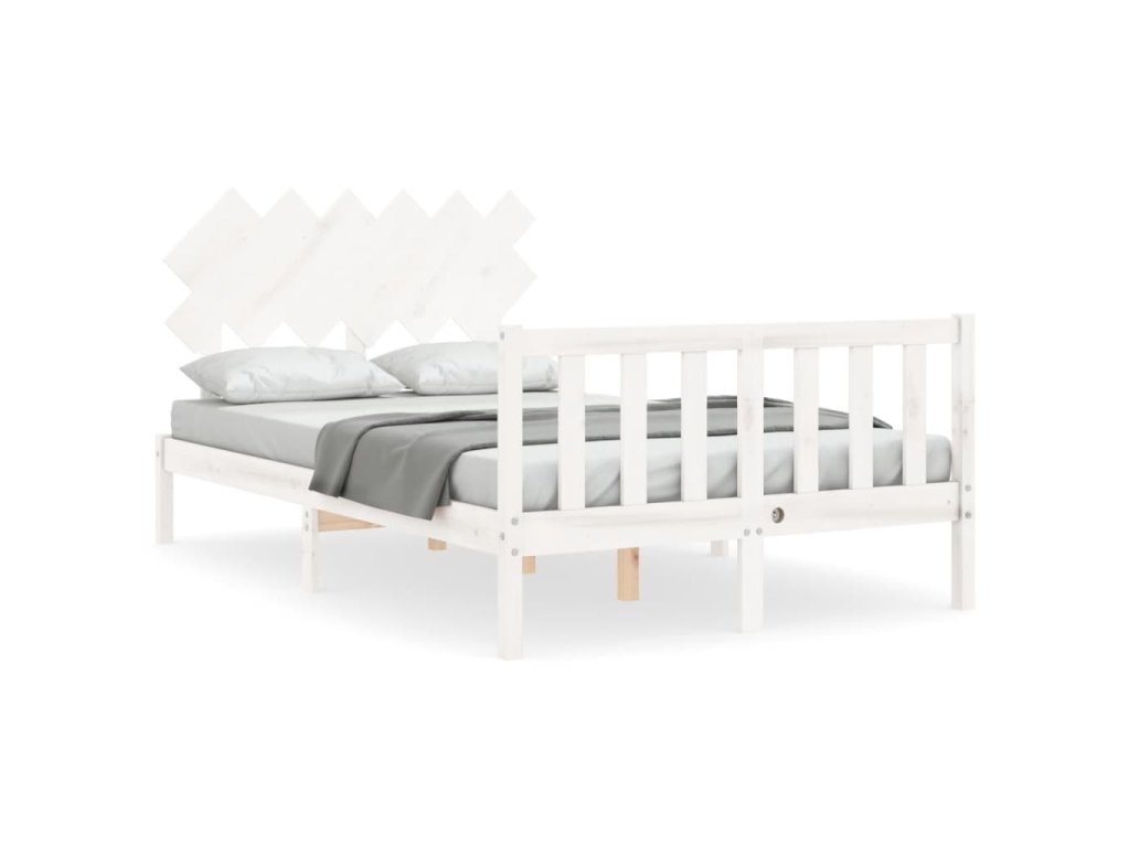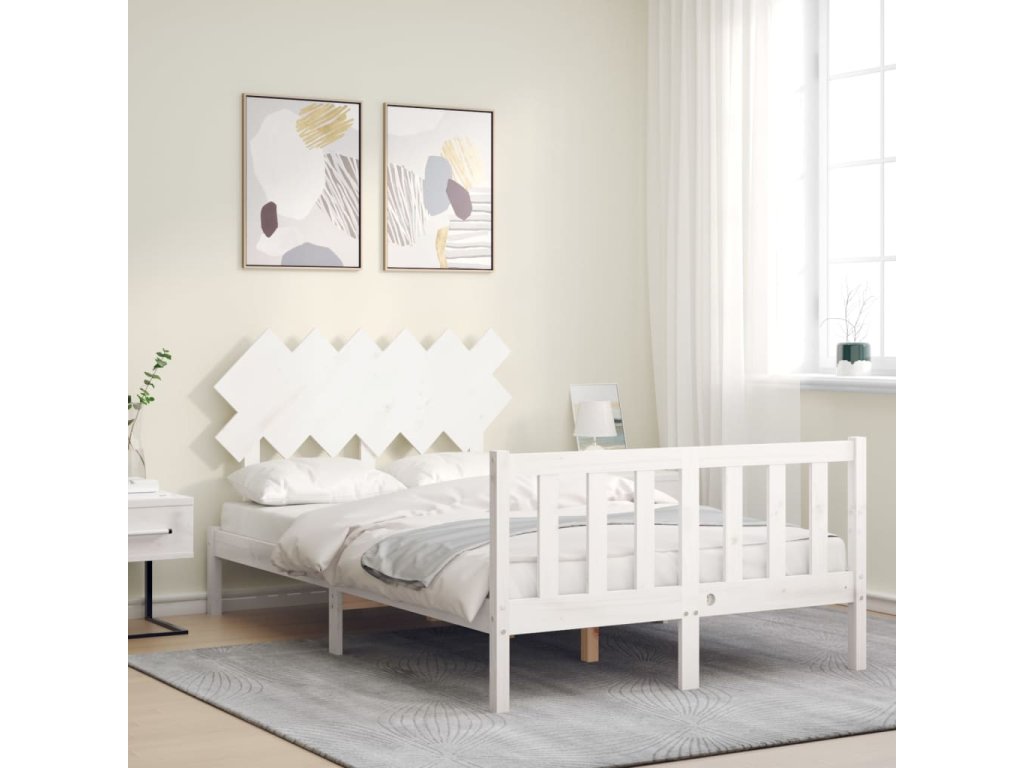 Rám postele s čelem bílý Double masivní dřevo 3193442