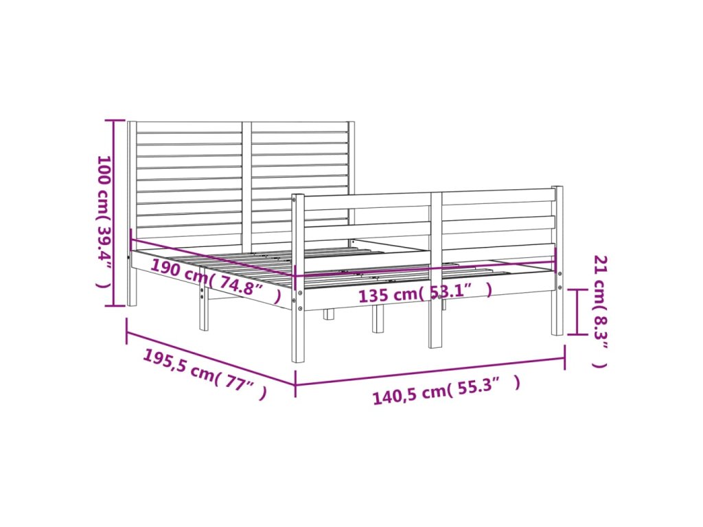 - Celkové rozměry postele: 195,5 x 140,5 x 100 cm (D x Š x V)