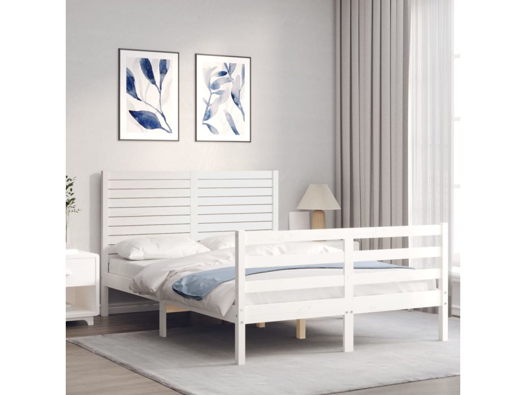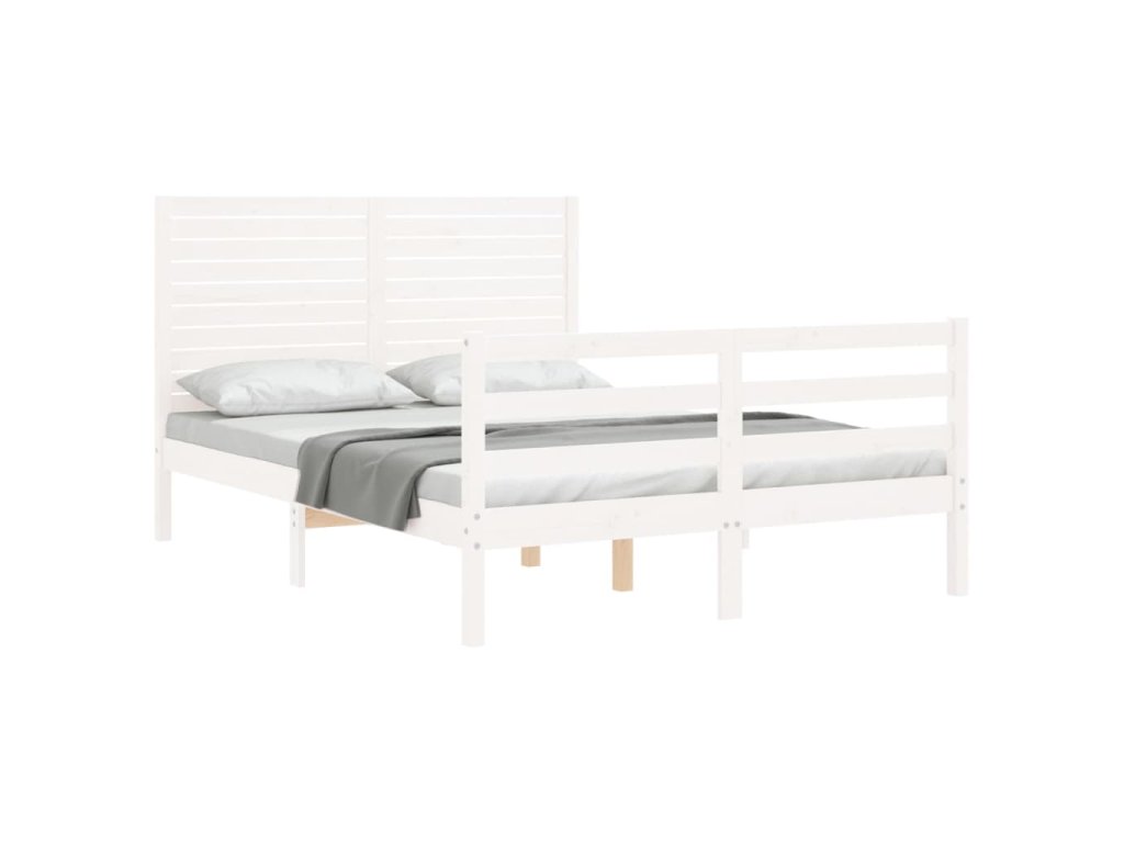 Rám postele s čelem bílý Double masivní dřevo 3195002