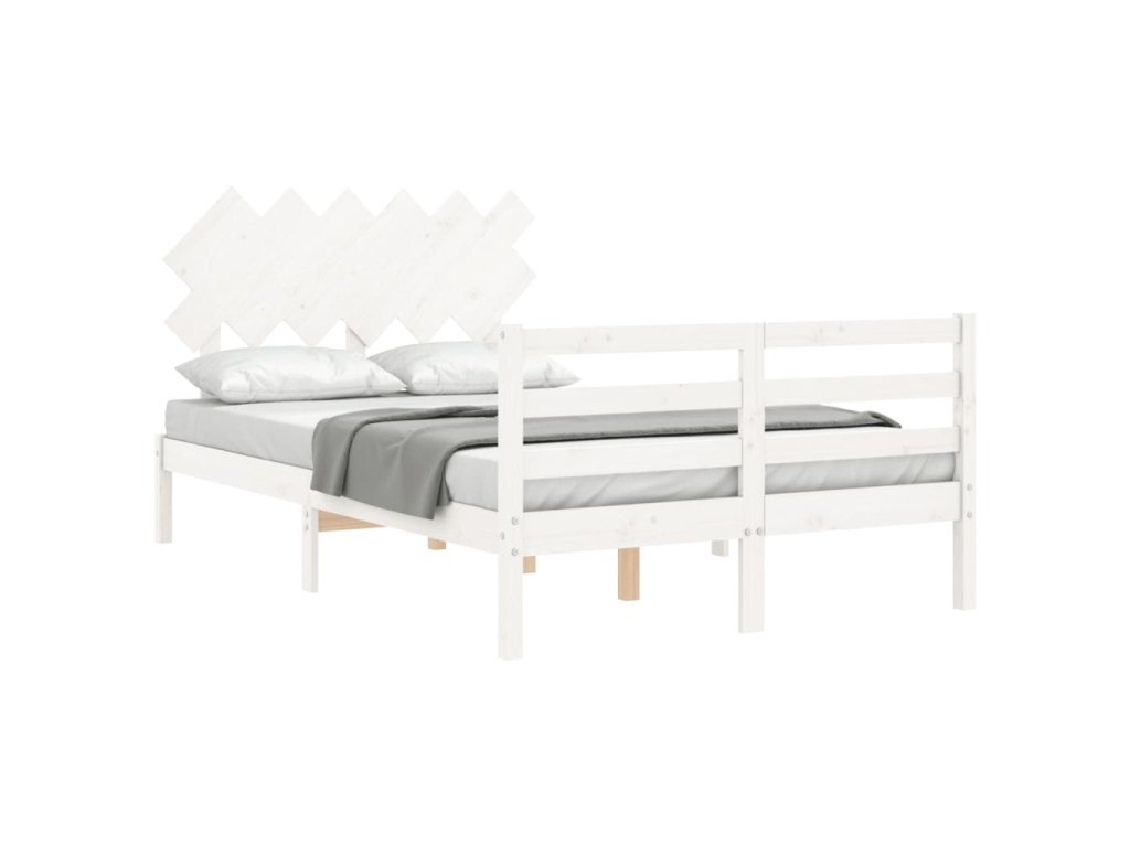 Rám postele s čelem bílý Double masivní dřevo 3195262