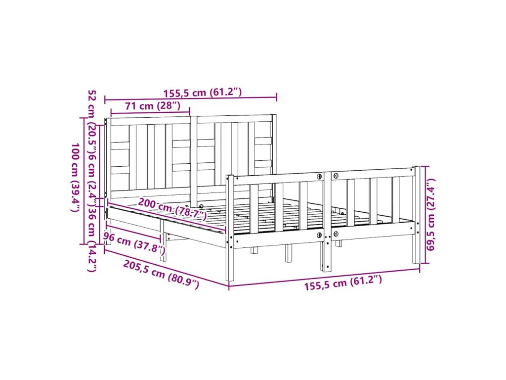 - Celkové rozměry postele: 205,5 x 155,5 x 100 cm (D x Š x V)