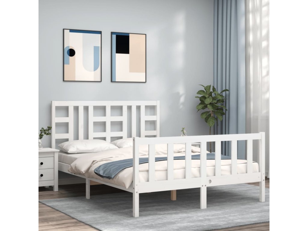 Rám postele s čelem bílý King Size masivní dřevo 3191977