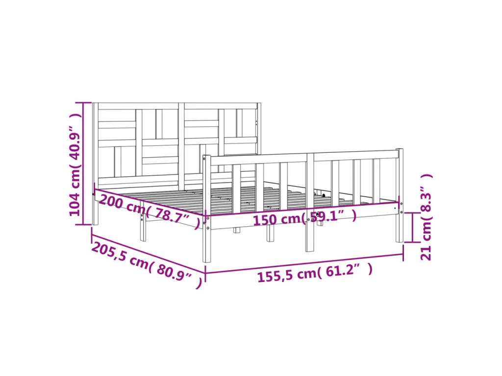 - Celkové rozměry postele: 205,5 x 155,5 x 104 cm (D x Š x V)