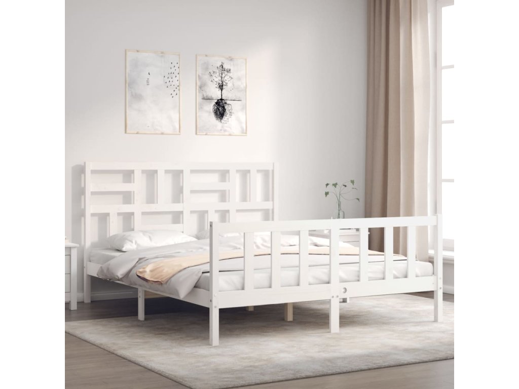 Rám postele s čelem bílý King Size masivní dřevo 3193082