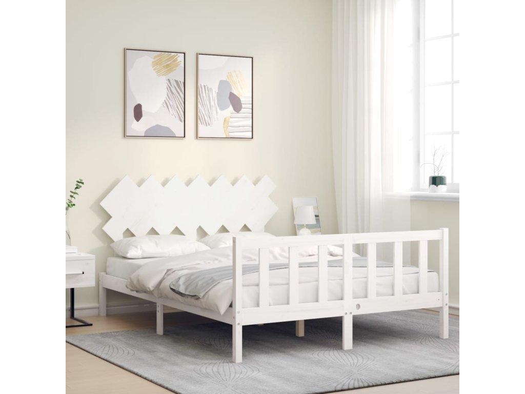 Rám postele s čelem bílý King Size masivní dřevo 3193472