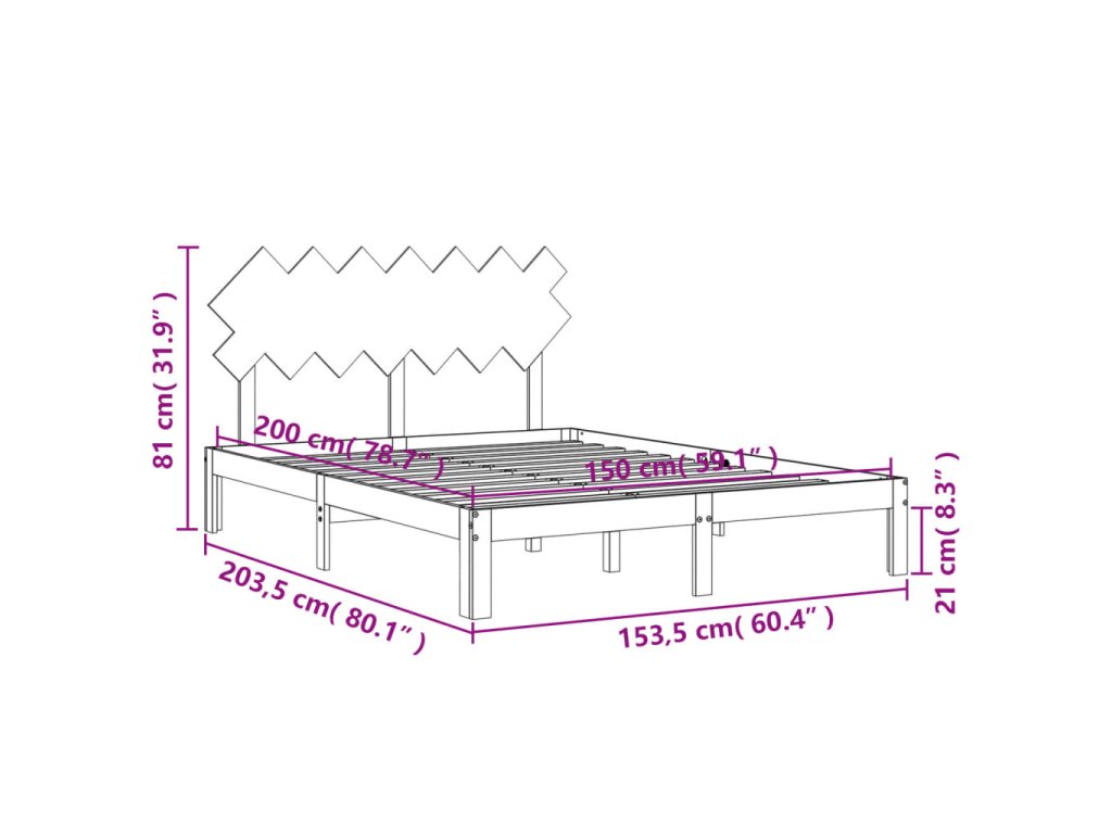 - Celkové rozměry postele: 203,5 x 153,5 x 81 cm (D x Š x V)