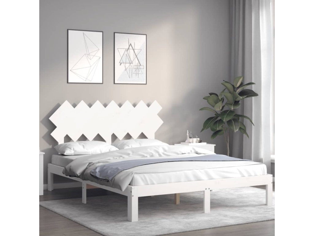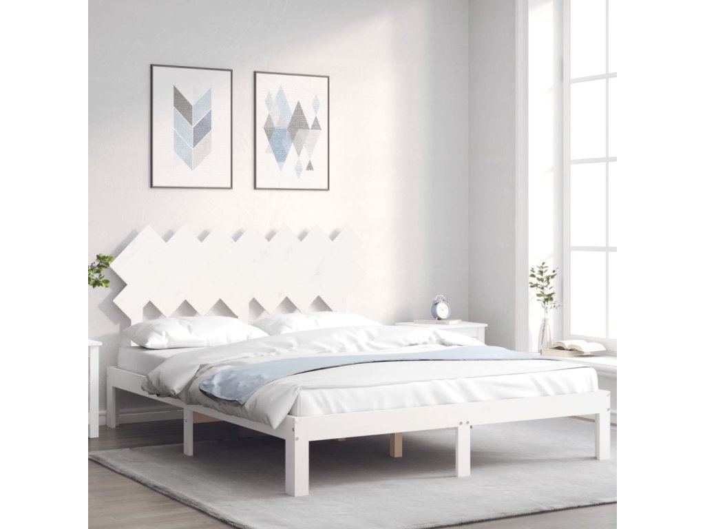 Rám postele s čelem bílý King Size masivní dřevo 3193732