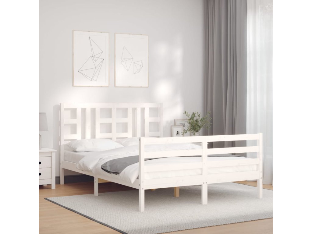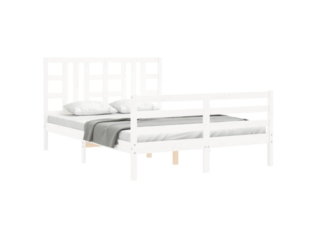 Rám postele s čelem bílý King Size masivní dřevo 3193927