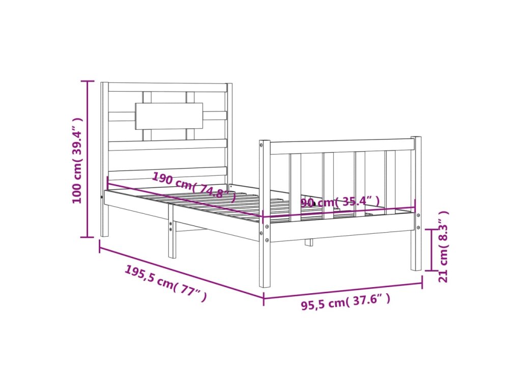 - Celkové rozměry postele: 195,5 x 95,5 x 100 cm (D x Š x V)
