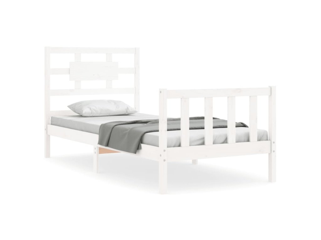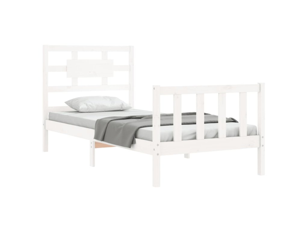 Rám postele s čelem bílý Single masivní dřevo 3192522
