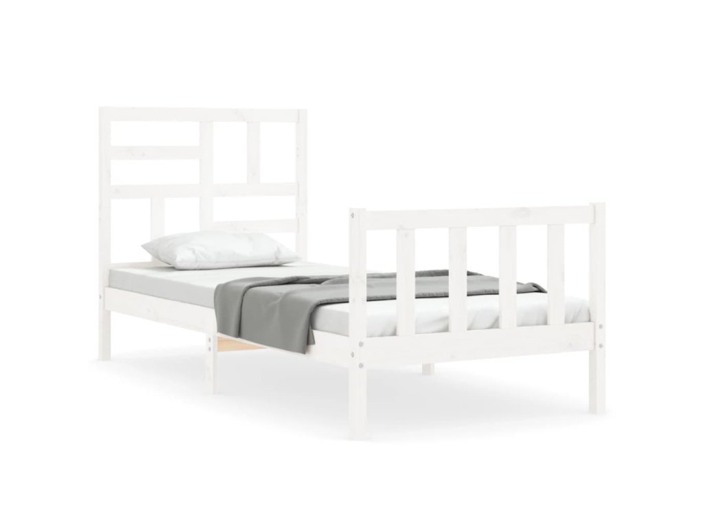 Rám postele s čelem bílý Single masivní dřevo 3193042