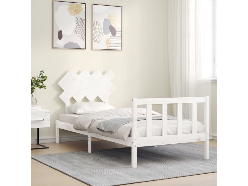 Rám postele s čelem bílý Single masivní dřevo 3193432