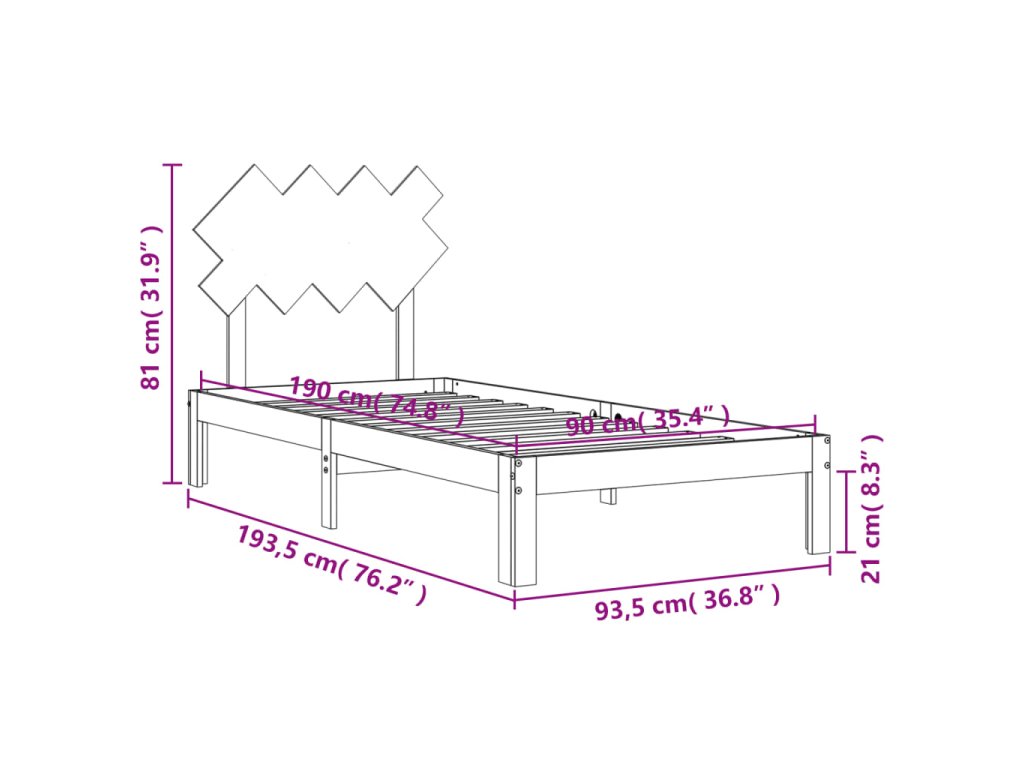 - Celkové rozměry postele: 193,5 x 93,5 x 81 cm (D x Š x V)