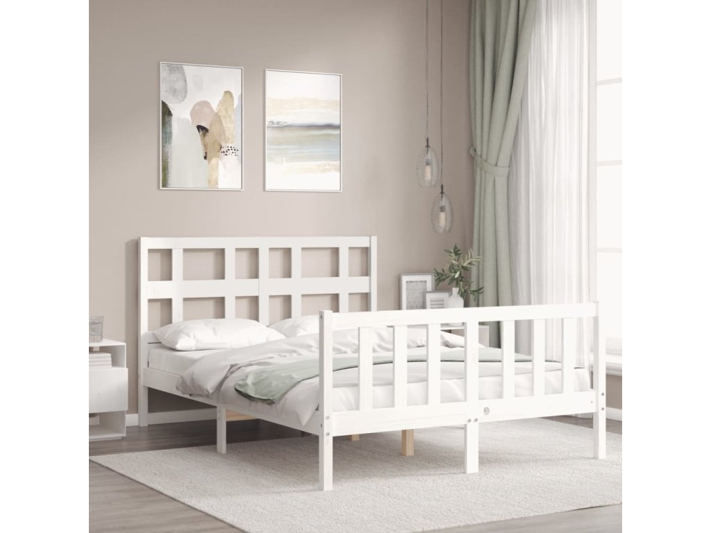 Rám postele s čelem bílý Small Double masivní dřevo 3192982