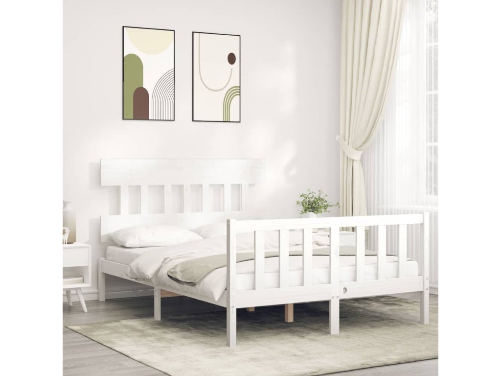 Rám postele s čelem bílý Small Double masivní dřevo 3193307