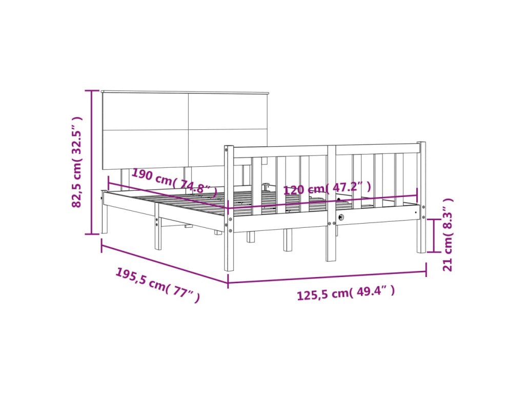 - Celkové rozměry postele: 195,5 x 125,5 x 82,5 cm (D x Š x V)