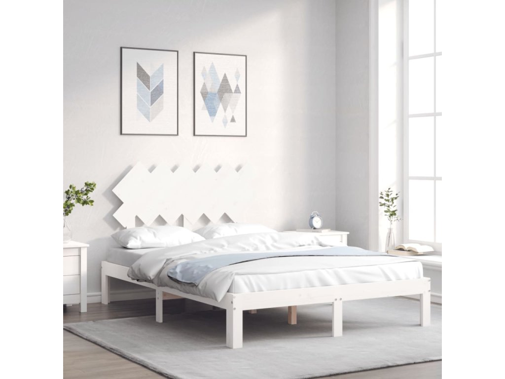Rám postele s čelem bílý Small Double masivní dřevo 3193697