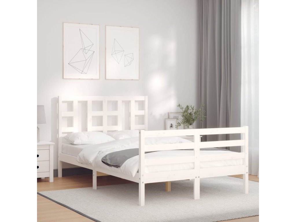 Rám postele s čelem bílý Small Double masivní dřevo 3193892