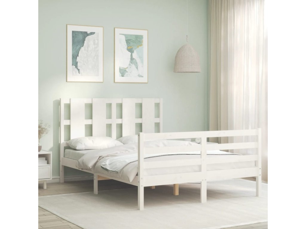 Rám postele s čelem bílý Small Double masivní dřevo 3194087