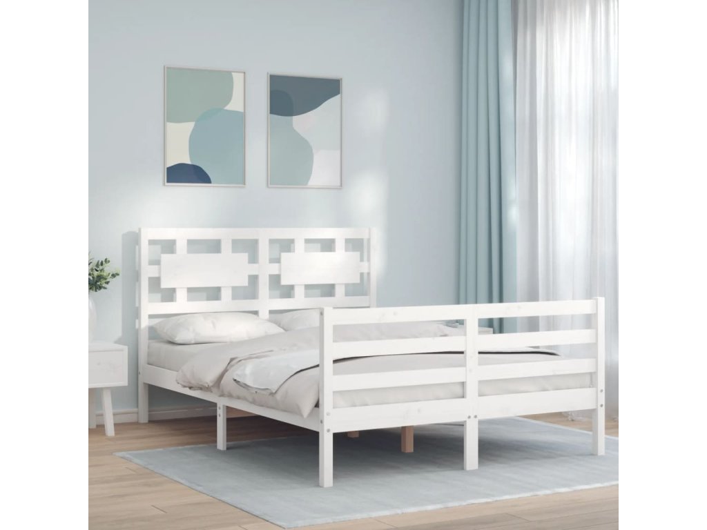 Rám postele s čelem bílý Small Double masivní dřevo 3194412