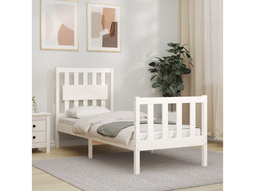 Rám postele s čelem bílý Small Single masivní dřevo 3192387