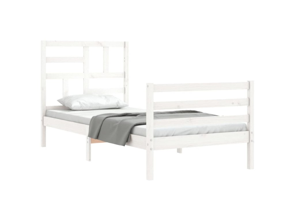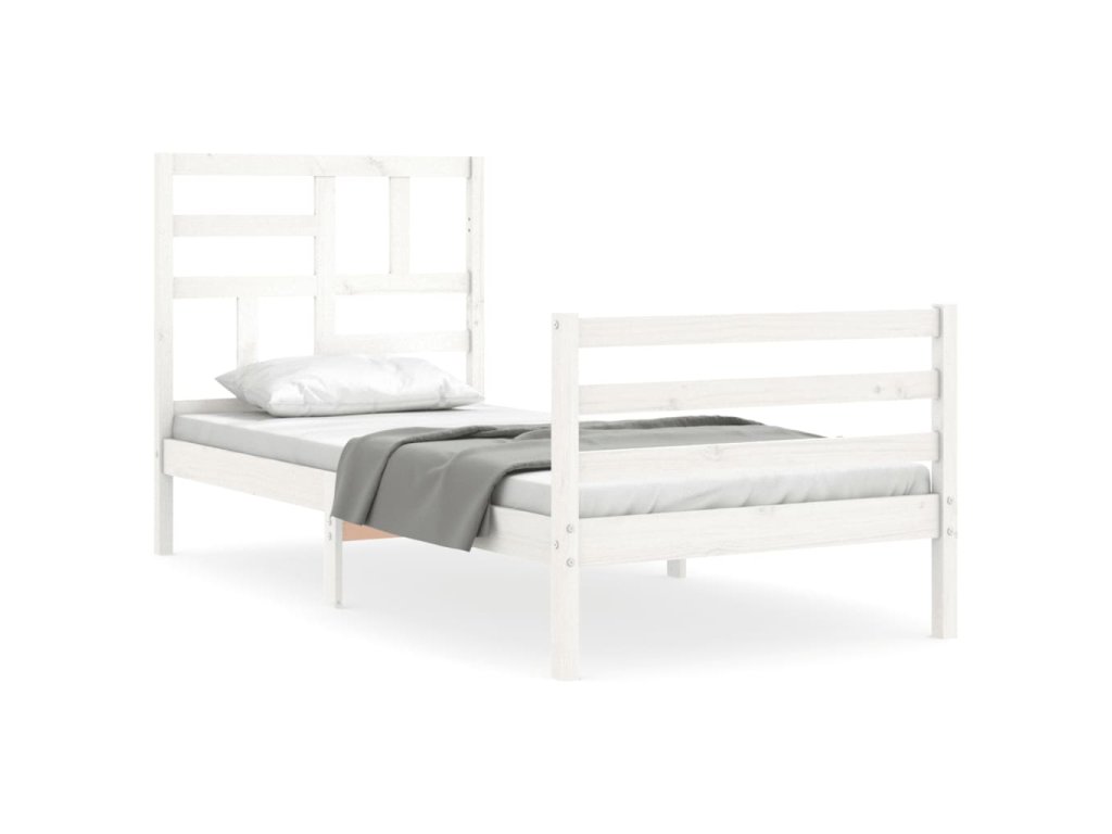 Rám postele s čelem bílý Small Single masivní dřevo 3194857