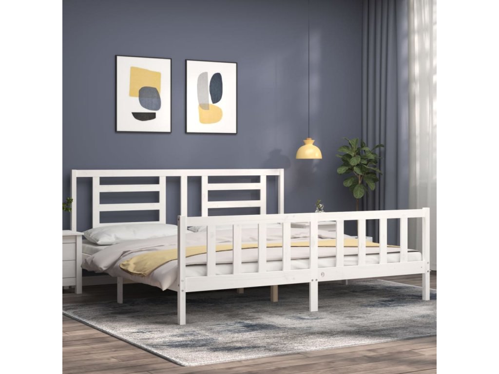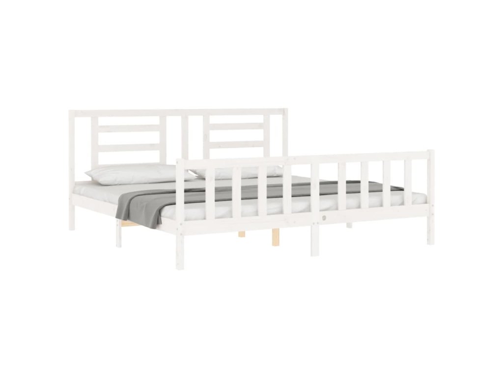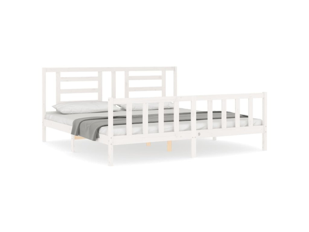 Rám postele s čelem bílý Super King Size masivní dřevo 3192897