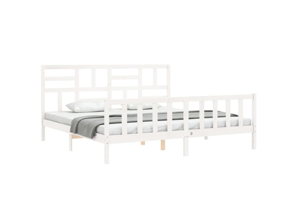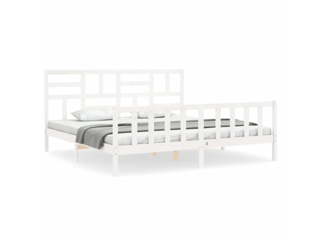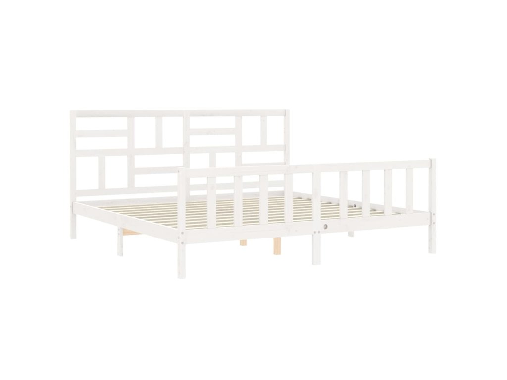 Rám postele s čelem bílý Super King Size masivní dřevo 3193092