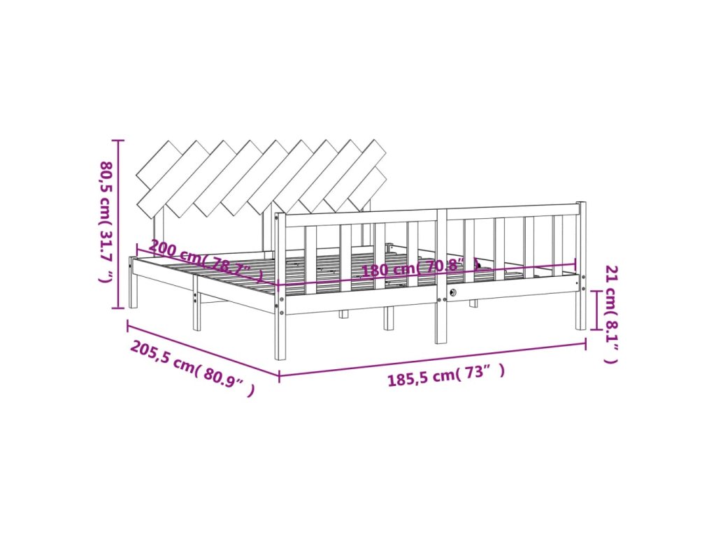 - Celkové rozměry postele: 205,5 x 185,5 x 80,5 cm (D x Š x V)