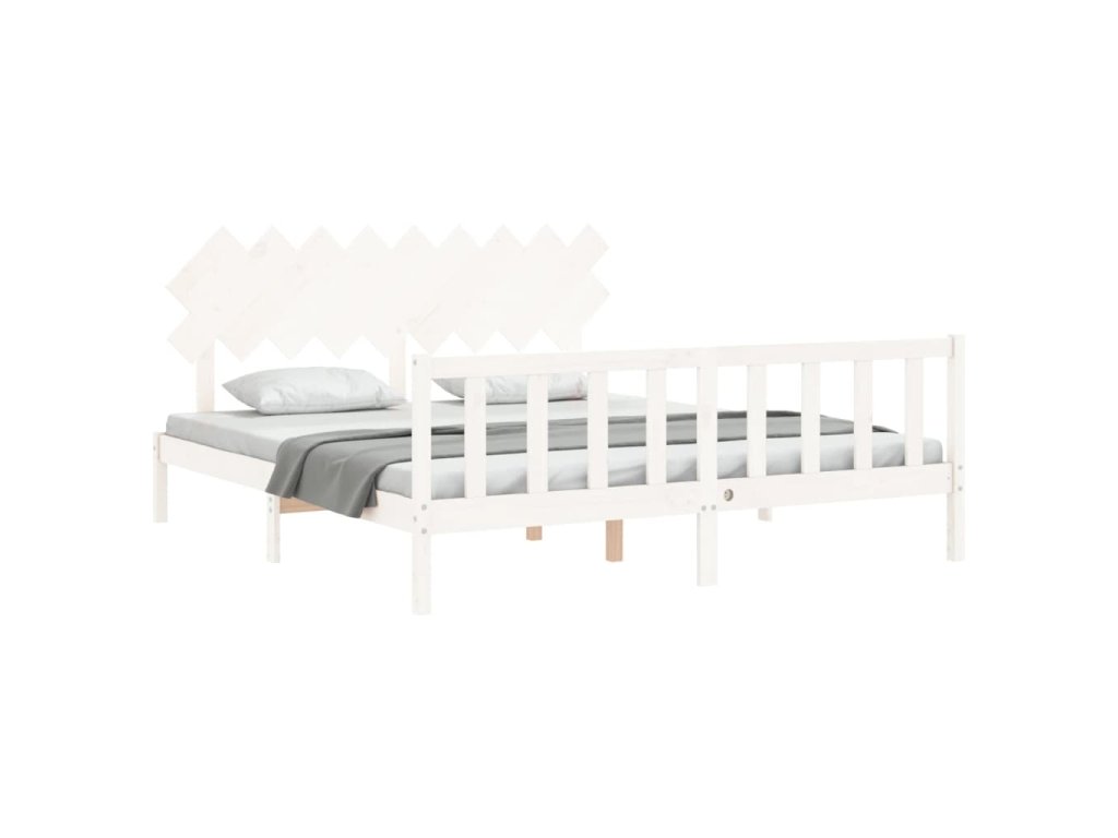 Rám postele s čelem bílý Super King Size masivní dřevo 3193482