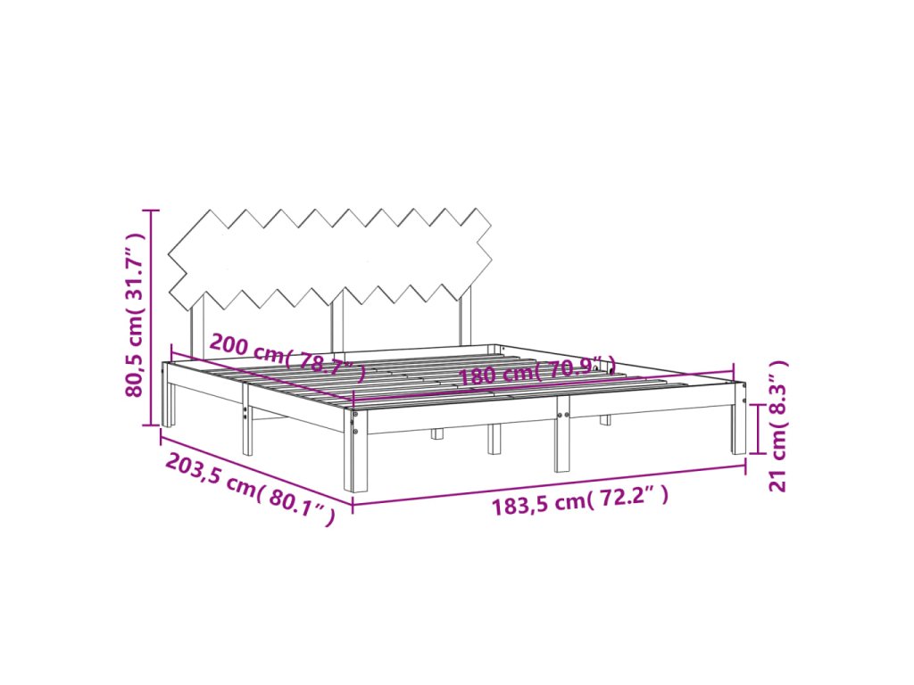 - Celkové rozměry postele: 203,5 x 183,5 x 80,5 cm (D x Š x V)