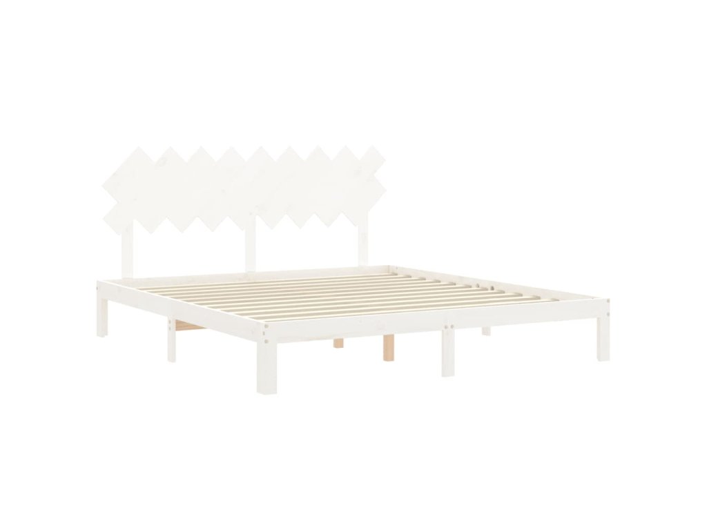 Rám postele s čelem bílý Super King Size masivní dřevo 3193742