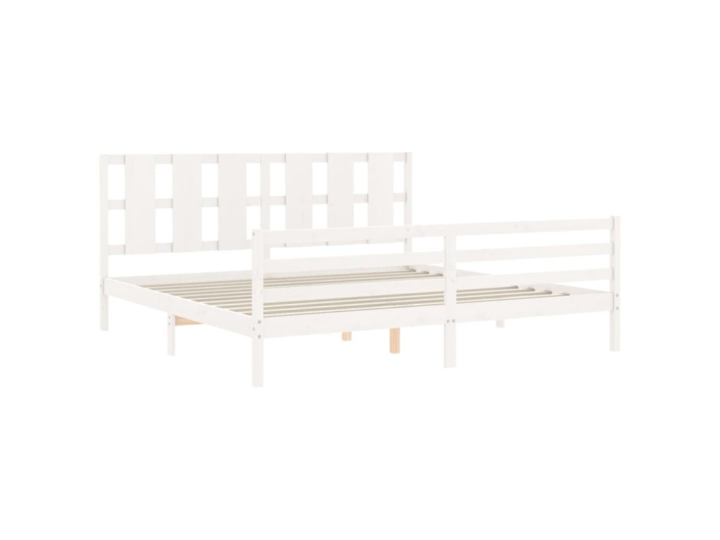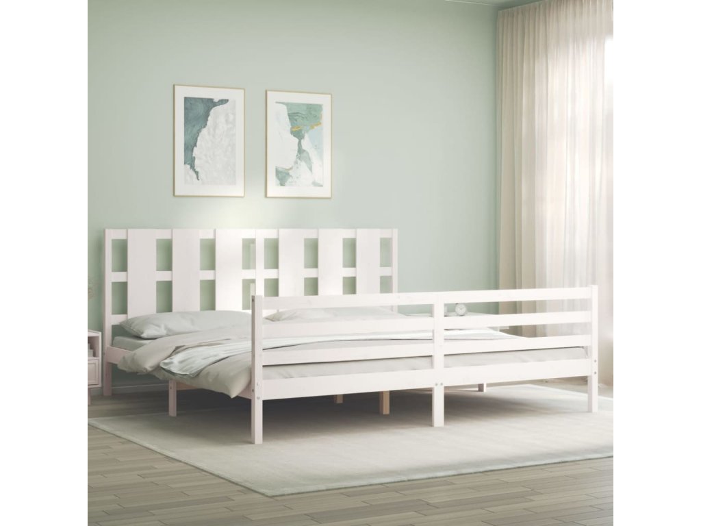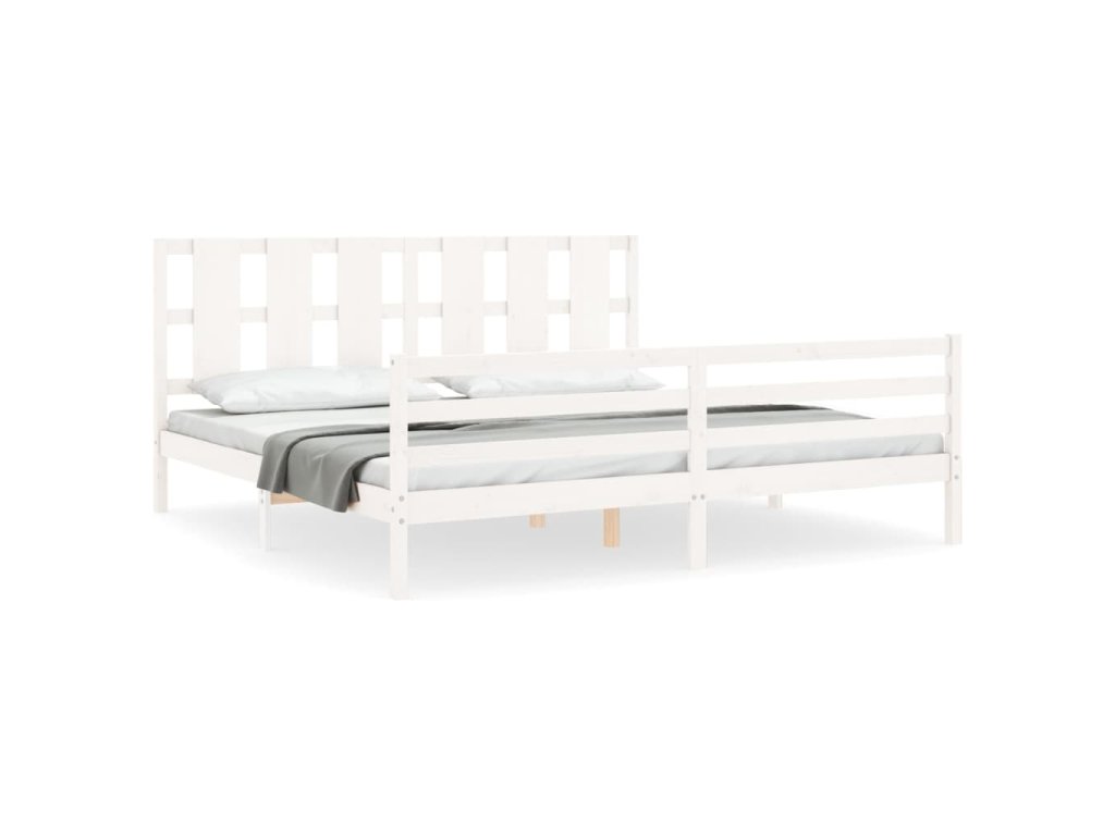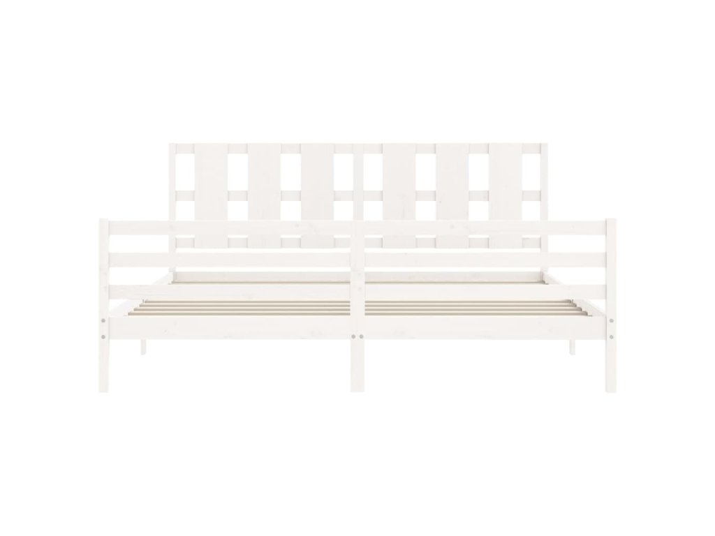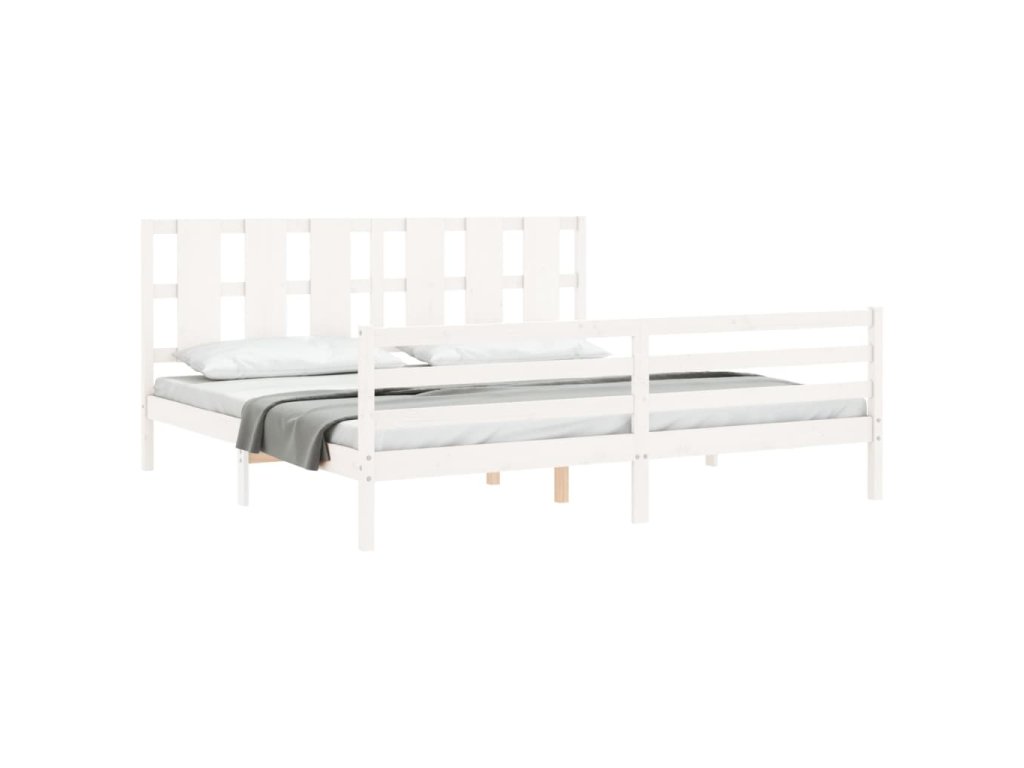 Rám postele s čelem bílý Super King Size masivní dřevo 3194132