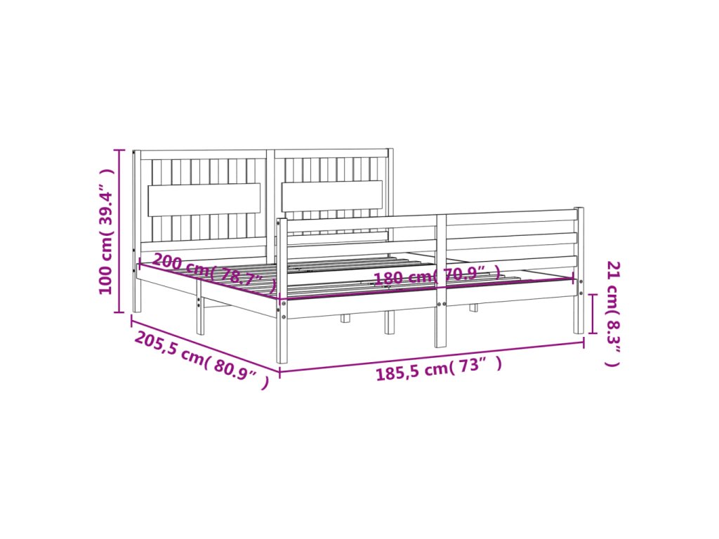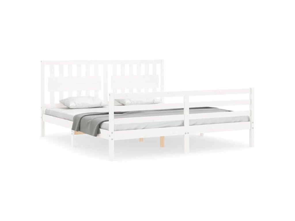 Rám postele s čelem bílý Super King Size masivní dřevo 3194327