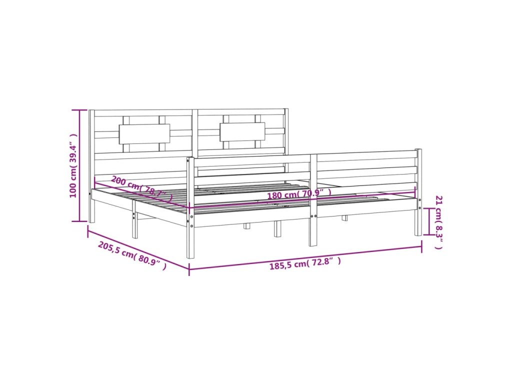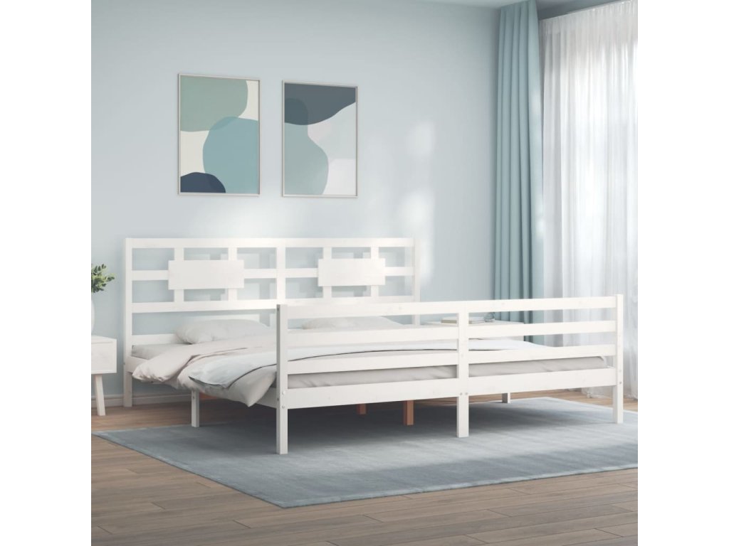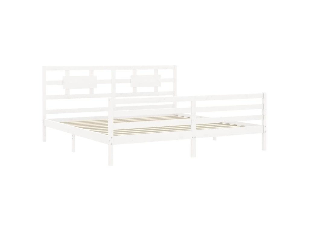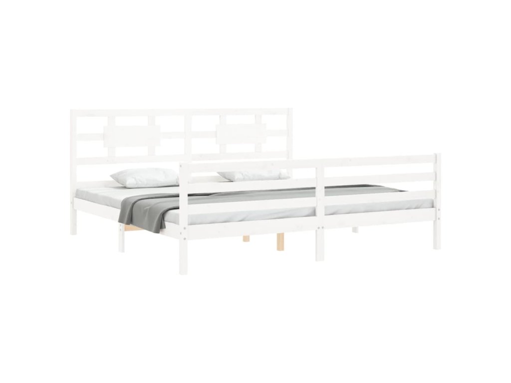 Rám postele s čelem bílý Super King Size masivní dřevo 3194457